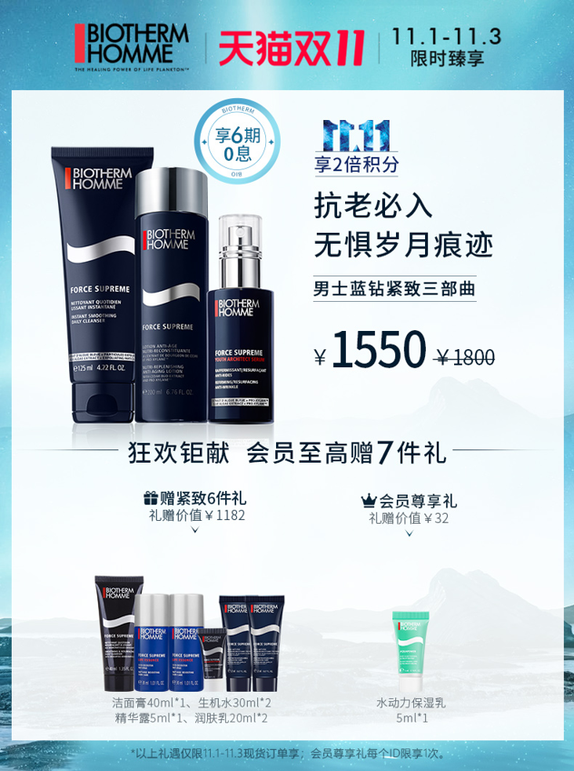 =1530元 到手价,赠品1182元。碧欧泉男士的蓝钻系列,直男都说好的系列,作为碧欧泉男士抗老的“明星产品”,蓝钻系列富含5%最高浓度Life Plankton™活源精粹。这是碧欧泉的灵魂保湿修护成分,萃取自法国比利牛斯山的愈颜之泉,能触启肌底源力,加速细胞新陈代谢,从肌肤底层一步一步唤醒细胞,让肌质真正从内而外更新换代。