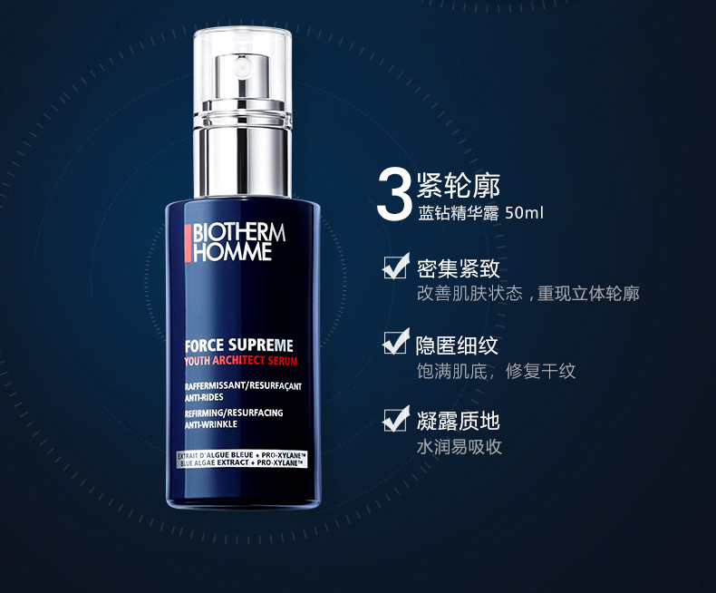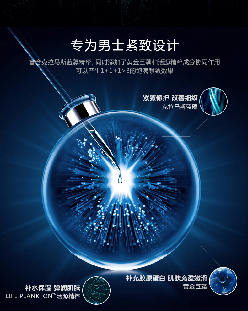 此外,碧欧泉蓝钻中还含有丰富的克拉马斯蓝藻和黄金巨藻,紧致修护原本肌肤,为肌肤补充胶原蛋白,使肌肤充盈嫩滑。活源精粹、蓝藻精华和黄金巨藻协同作用,不仅可以产生1+1+1>3的饱满紧致效果,还能抚平细纹、焕新肌底,让精英男士们拥有更滋养紧致、年轻活力的肌肤。
