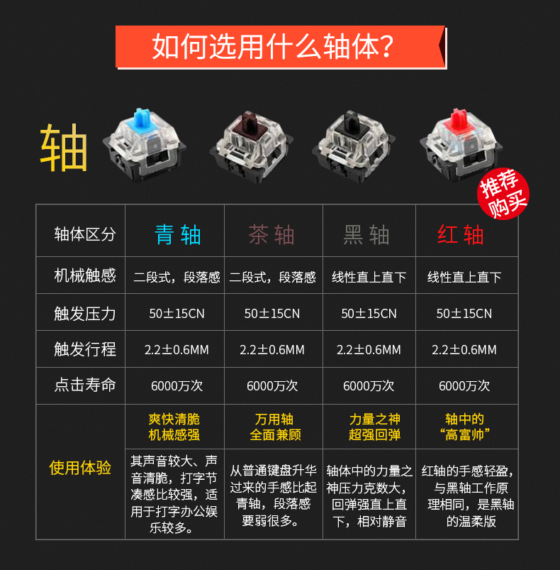 机械键盘采用了质量稳定的凯华龙青轴,除了出色的手感打字非常舒服外,个人认为还比较适合玩FPS游戏,红轴和青轴是小编最喜欢的两个类型的键盘了。