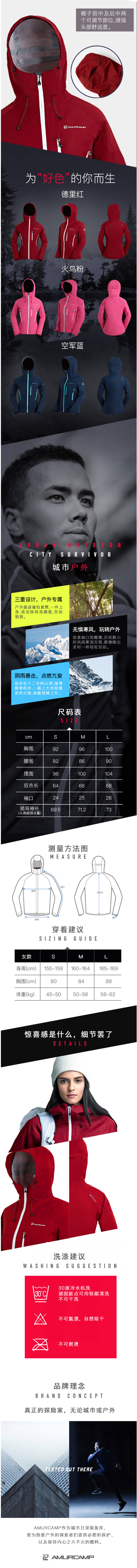 Amurcamp合金元素系列拥有15000mm防水指数,和5000g的透气指数,高强度抗撕裂面料,所有缝线位置都经过热封压胶处理,不会从针孔渗水。主拉链和侧边口袋拉链都是防水的。作为对比,国内品牌的冲锋衣多是5000mm水压和3000g透气,因为国标的要求就是5000mm水压,多数时候防水就够了。