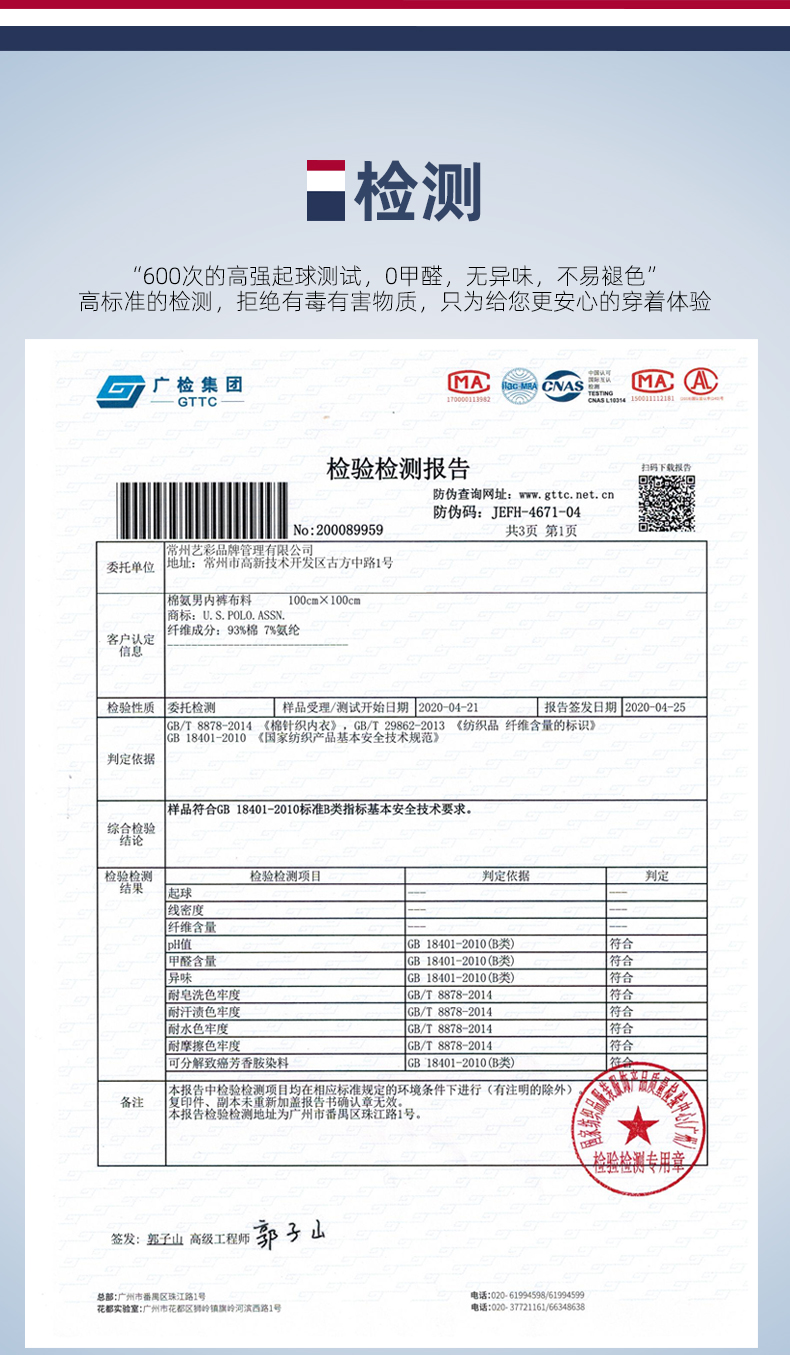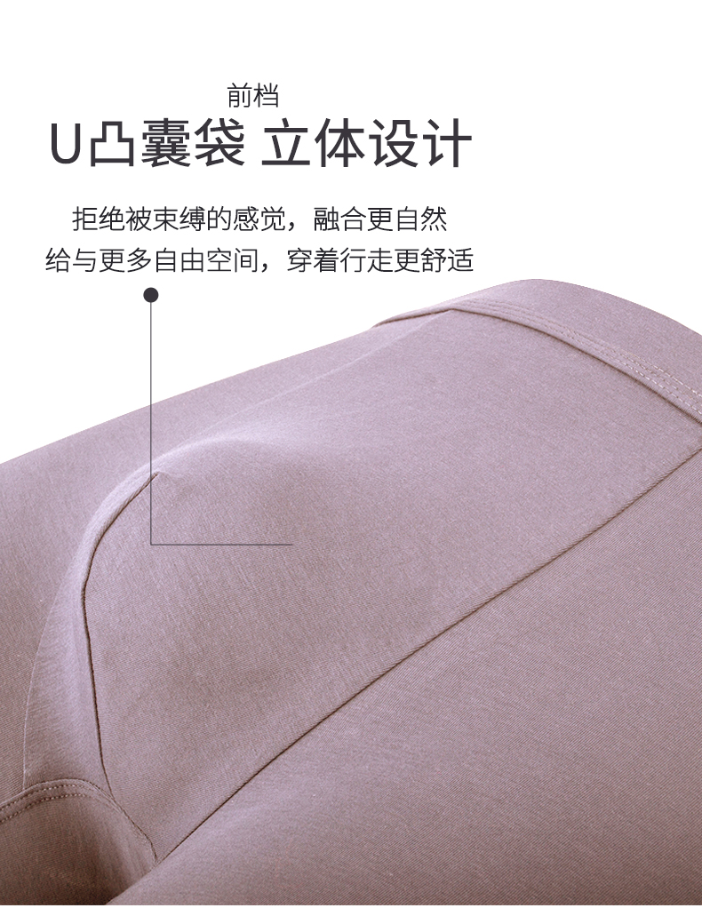 面料经过600次高强度起球测试,0甲醛、无异味、不易褪色,穿着更放心。一片式裁剪,U型凸起式囊袋设计,大空间穿着清爽舒适,时尚明根腰带无感标签,加宽3cm腰边,高弹力不勒,不易变形,穿着更舒适。