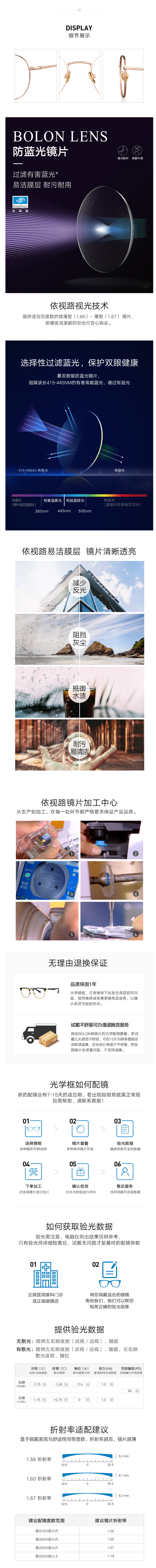 (镜片适合度数:0-1000度 散光:200度内 瞳距范围:55-75)