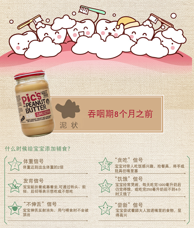 最开始编辑也是从朋友那听说的这款花生酱,当时还不知道名字(那货不知道英文不会读),就说盖子上有个五角星,后来我找了下叫“Pics”,买来尝了下跟便宜的花生酱一比,差距有点大啊,入口更绵密,味道也纯正,一点都不齁人。