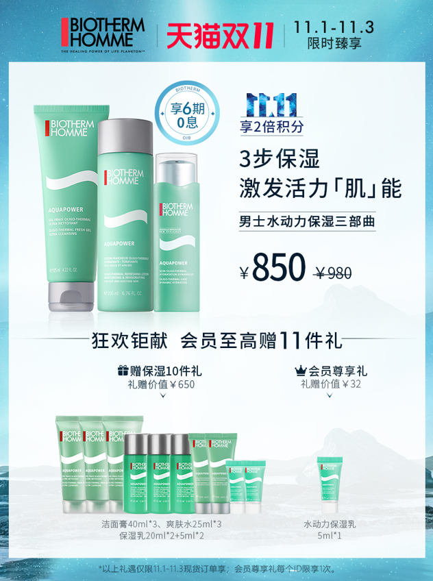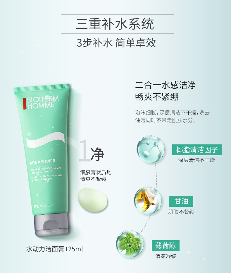 =830元 到手价,保湿补水 张艺兴保湿同款,包含洗面奶+爽肤水+润肤乳3件套,赠品价值650元。碧欧泉男士水动力组合,舒缓紧绷,二次清洁、平滑修护。清爽的碧绿色胶状质地,5秒钟迅速渗透肌肤,带给肌肤无比的清凉及活力,使肌肤一整天不会感受干涩及紧绷。