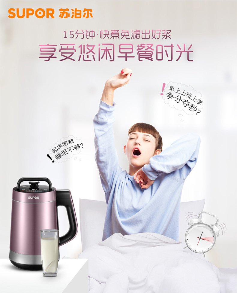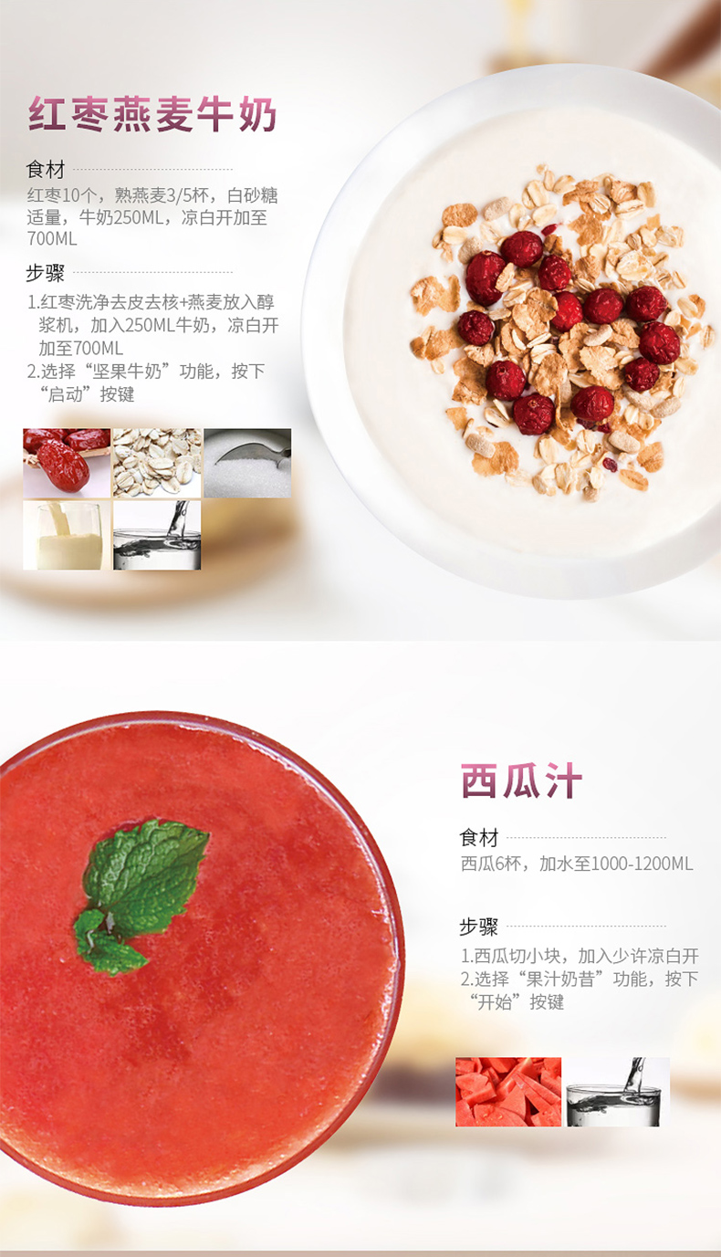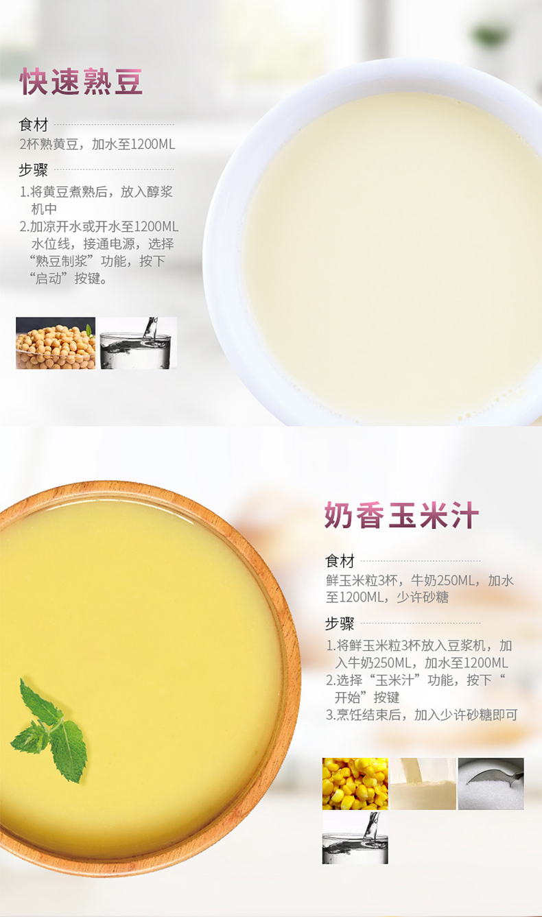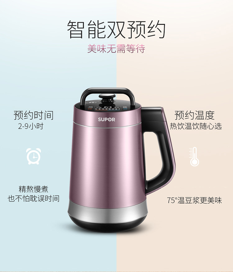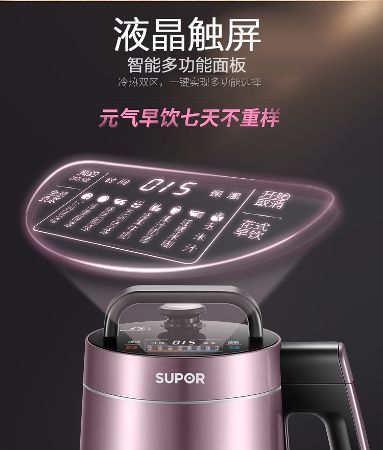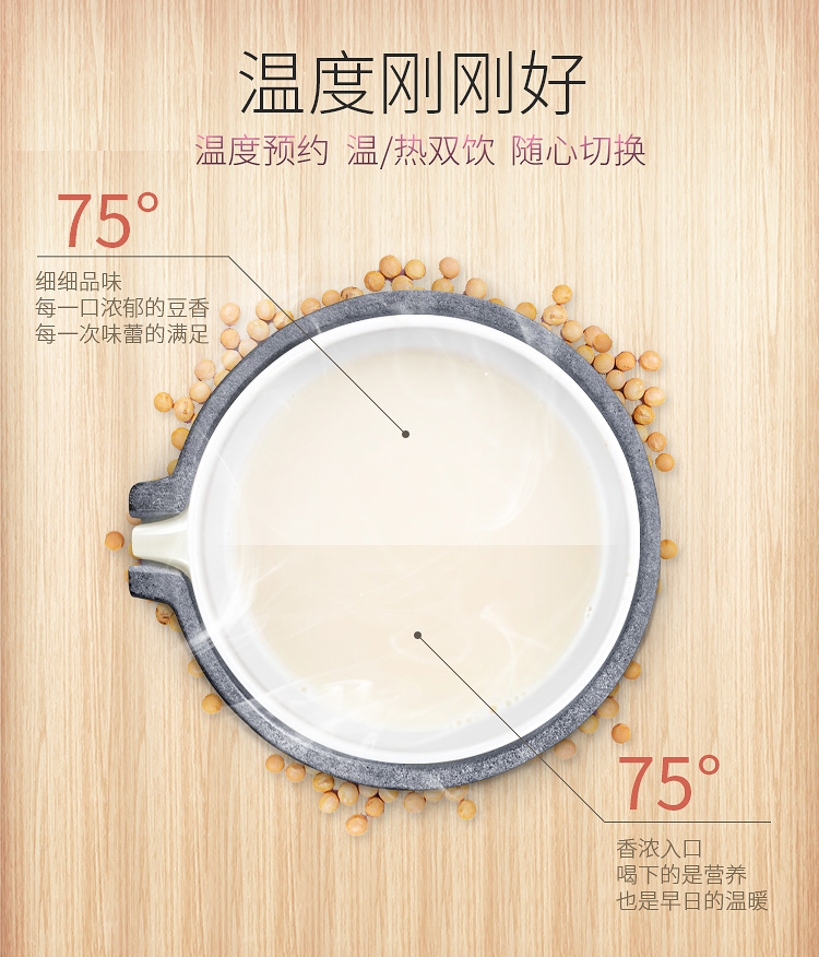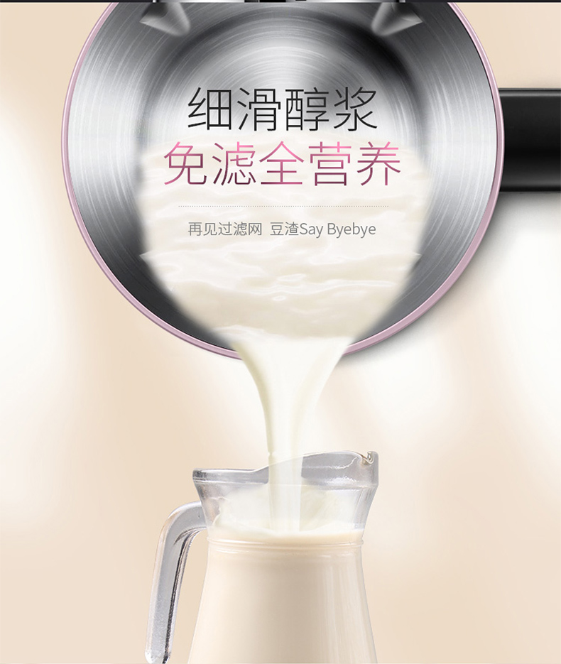 拥有智能熬煮程序,针对不同食材,采用不同的研磨时间、力度、熬煮时间、温度等,都有非常科学的规范,达到充分释放不同食材的营养;底侧立体加热,豆浆在制作过程中不糊底。