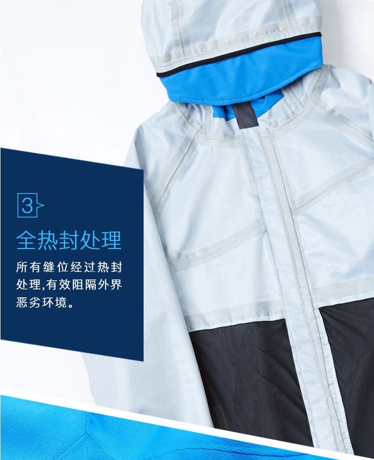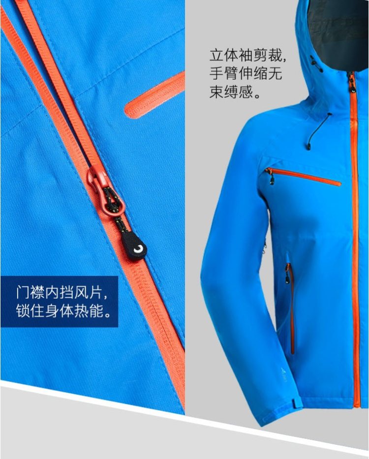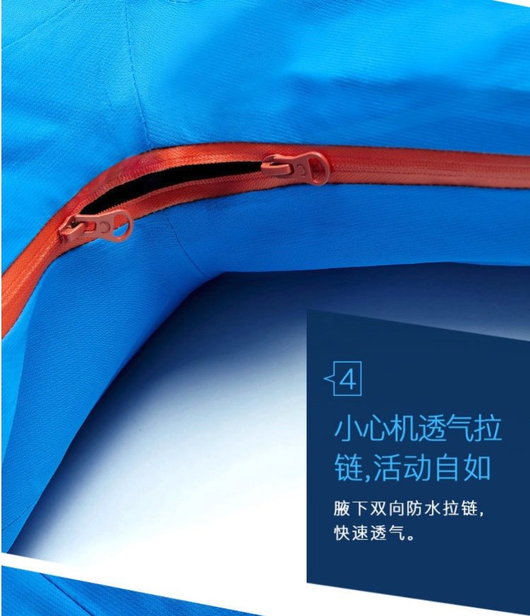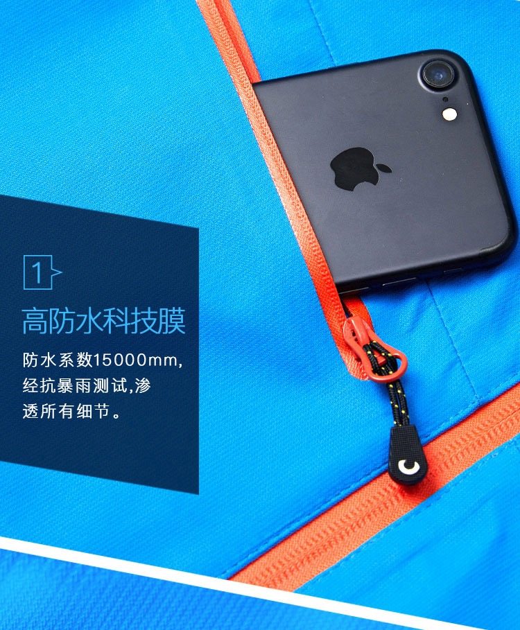 对一件冲锋衣来说,国家标准是5000mm水压,到这个程度就可防大雨。对防冲锋衣来说,面料做到5000mm水压非常简单,难点在于对缝线针孔、拉链和拼接处的防水处理,这些位置通常都使用压胶工艺,要对所有漏水/渗水的位置压胶,压胶的密闭程度,也压胶的寿命(不开胶)才是核心科技。