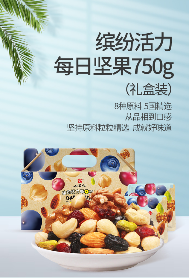 这款山里仁 缤纷活力每日坚果,规格:750g/30袋,8种原料,5国精选,科学配比,专业营养师推荐,5种高能坚果,65%高占比,3种超级果干,25g一包,科学定量,营养美味。