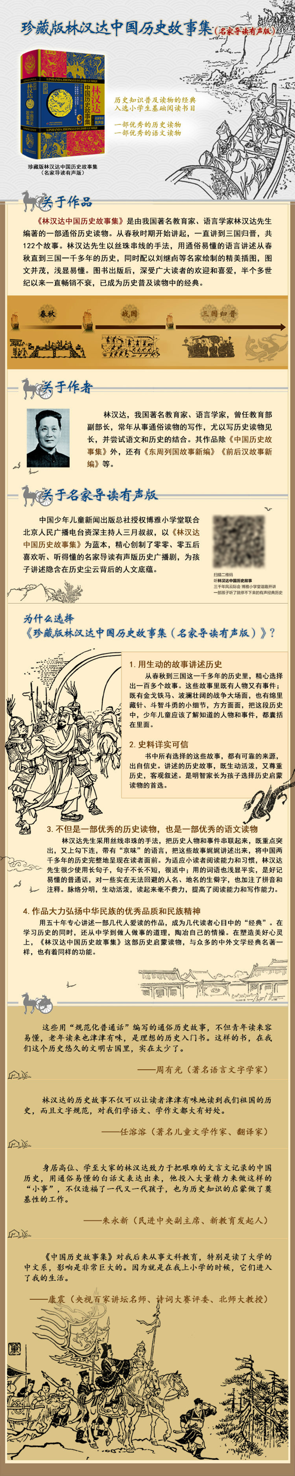 《林汉达中国历史故事集》,以《左传》、《史记》等正史所载为基础,多个故事按时间顺序编排,既独立成篇,又相互联属,清晰地勾勒了三国时期的历史概貌,取材准确、剪裁精当,是青少年读者理想的历史入门读物。