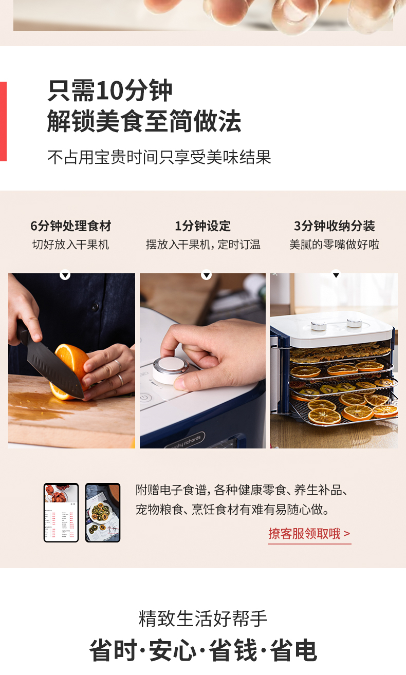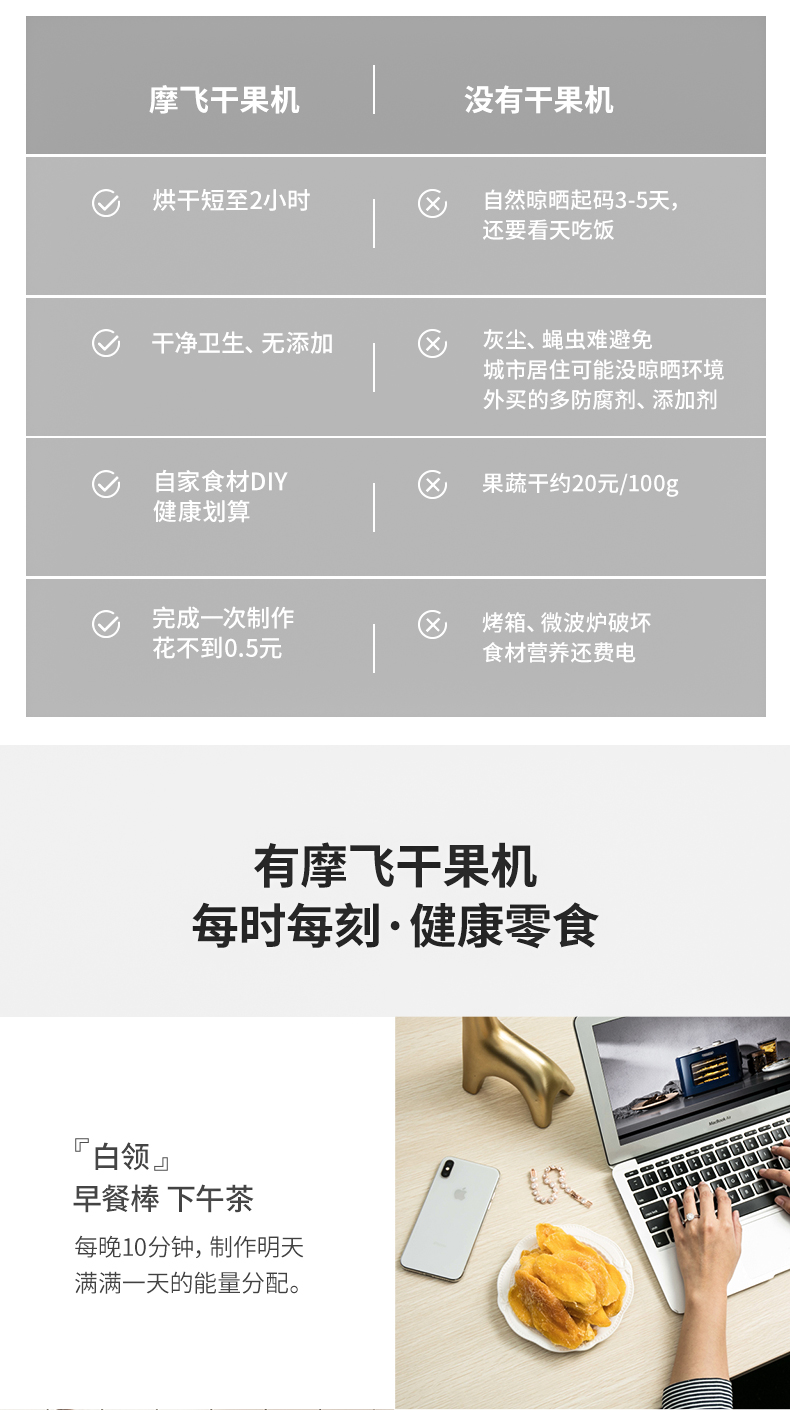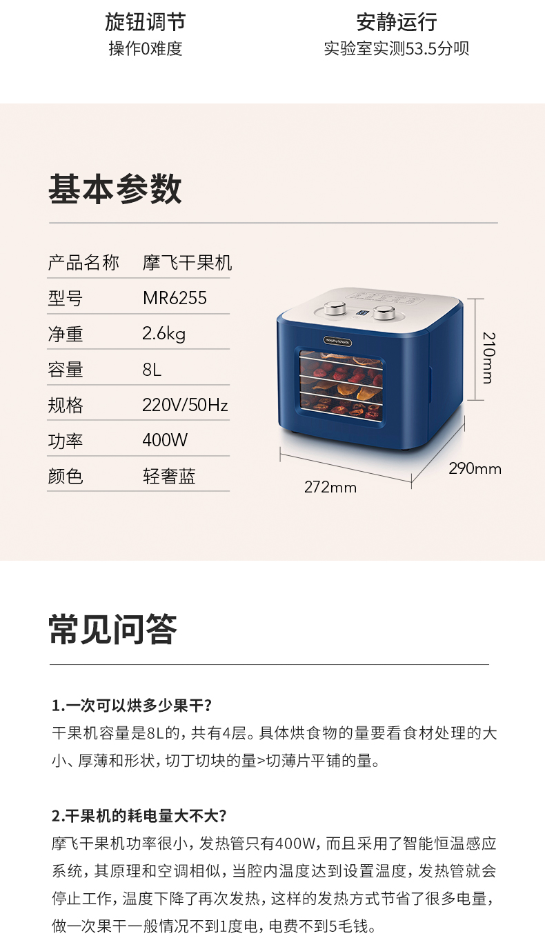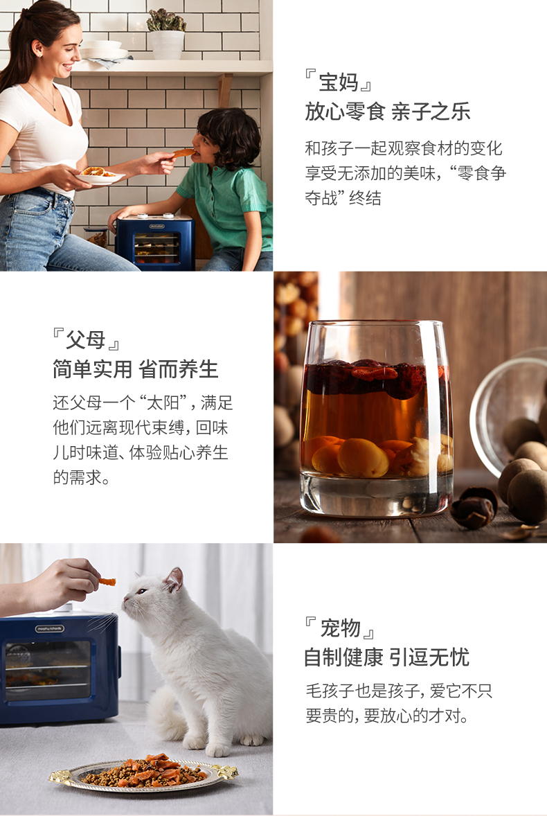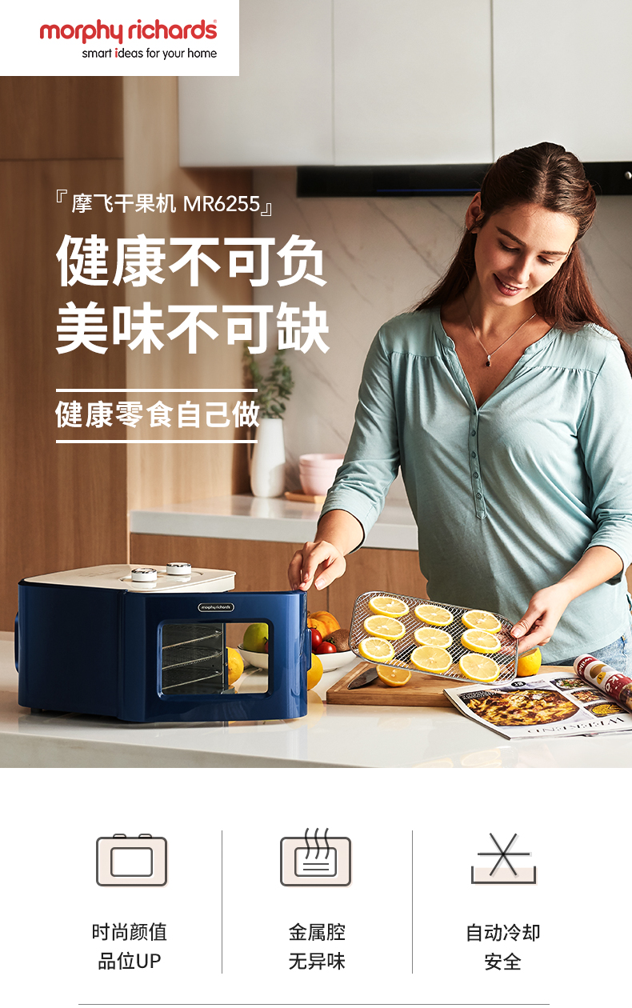 采用3D沿弧背部风道+电子温感,高效风感,热力更加均匀。全金属内腔+网格,不产生异味,使用寿命更长,4层活式抽屉网格,可视化玻璃窗,旋钮调节。自制干果零食,远离添加剂,远离不健康食品。