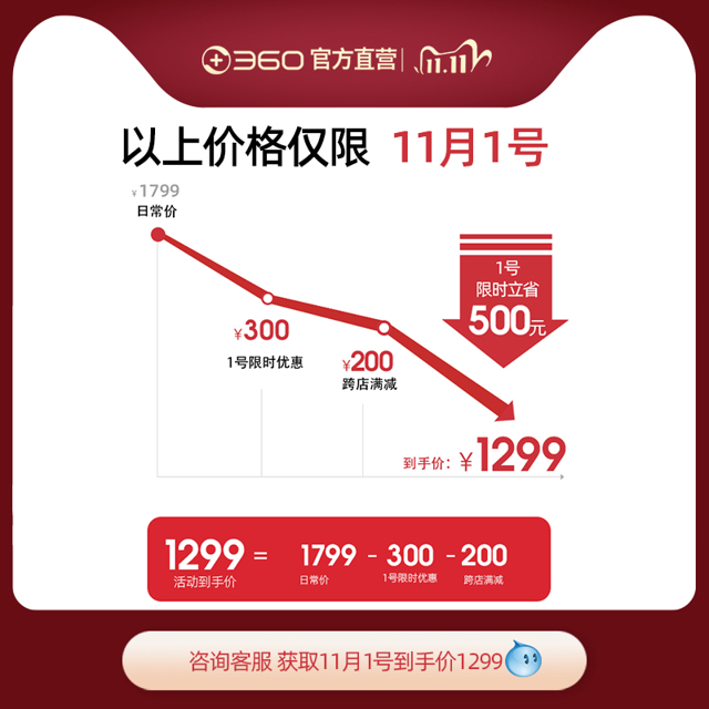 天猫360多壹小时专卖店目前售价1799元,参加活动满1799元减300元,跨店满减200元,实付1299元,近期好价,感兴趣的买买不容错过~
