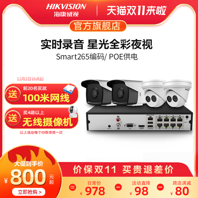 天猫海康威视旗舰店目前售价880元,参加每满300元减40元活动,实付800元,送工具箱+监控网线+网线钳,近期好价,有需要的买买可以入手啦。