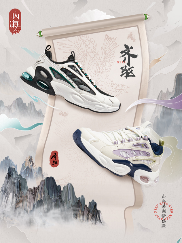 这款特步的山海系列是特步有名的国潮款,市场热度很高,而且设计上我也觉得真的很帅,后掌还增加了气垫材质,脚感更好,日常穿着更加舒适。