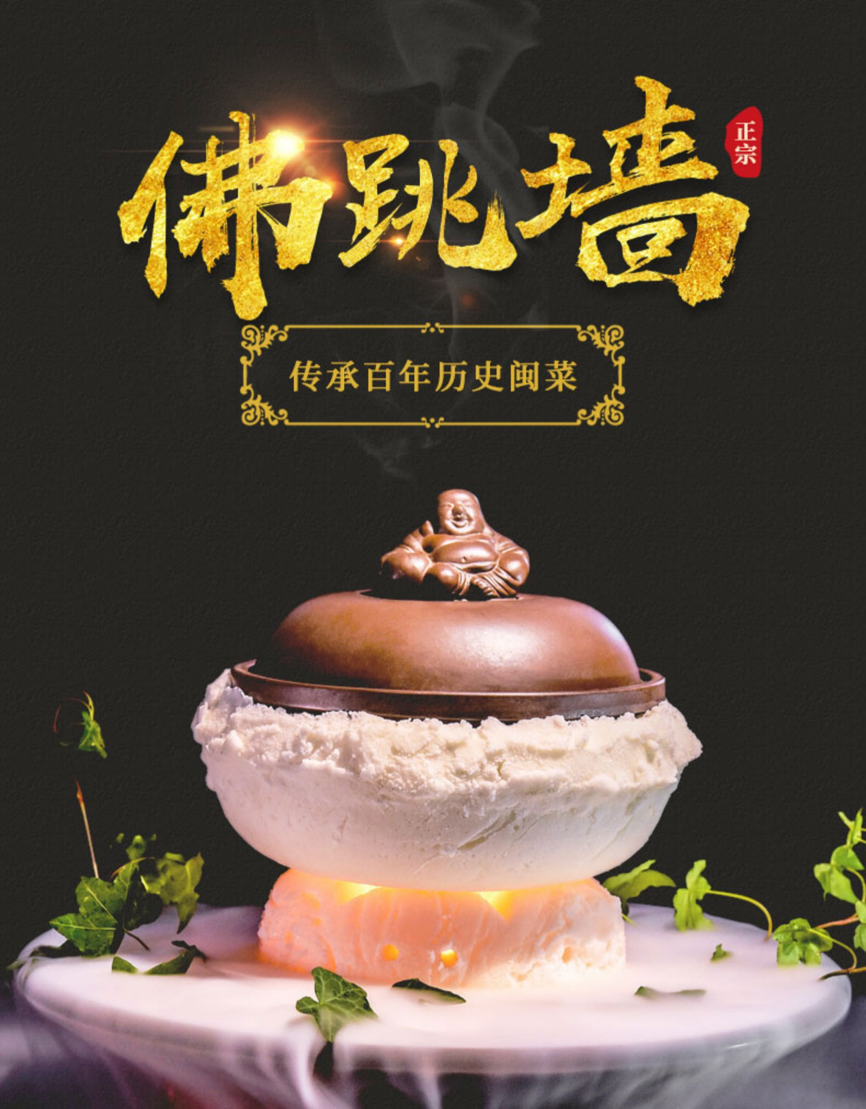 “坛启荤香飘四邻,佛闻弃禅跳墙来”正宗福建佛跳墙。至今已有百余年的历史。吃起来软嫩柔润,鲜香浓郁,荤而不腻;各料互为渗透,味中有味,而且营养价值极高。绝对是宴会中的压轴菜之一。