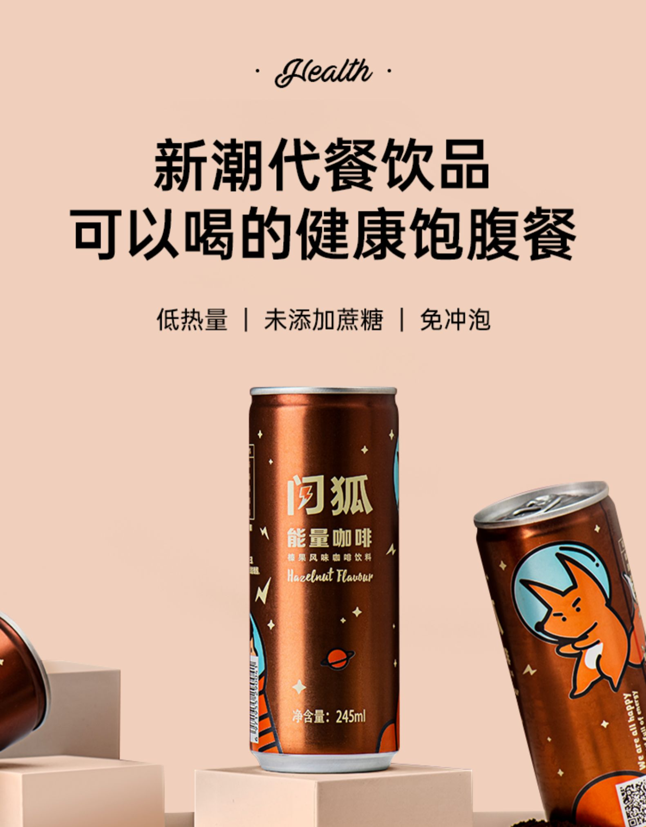 闪狐防弹咖啡携手世界顶级的研发企业德乐一起,精选低霉菌阿拉比卡咖啡豆,将来自新西兰的优质草饲黄油和从椰子油中提纯出高纯度的 MCT 油,以优化后的全新油脂比例加入到至臻品质的冰滴黑咖啡中,令其充分融合,改善了原有的油腻感,冷热皆宜,其严苛的低温萃取工艺降低了传统咖啡中的酸涩成分,让咖啡的口感更加顺滑饱满。其所强调的低毒素、纯天然、高品质原材料以及无糖无添加剂的原则完美契合当代人的绿色健康理念,无论何时何地都是最好的盈体代餐减脂饮品,激活身体燃脂状态,为身体无限续能。
