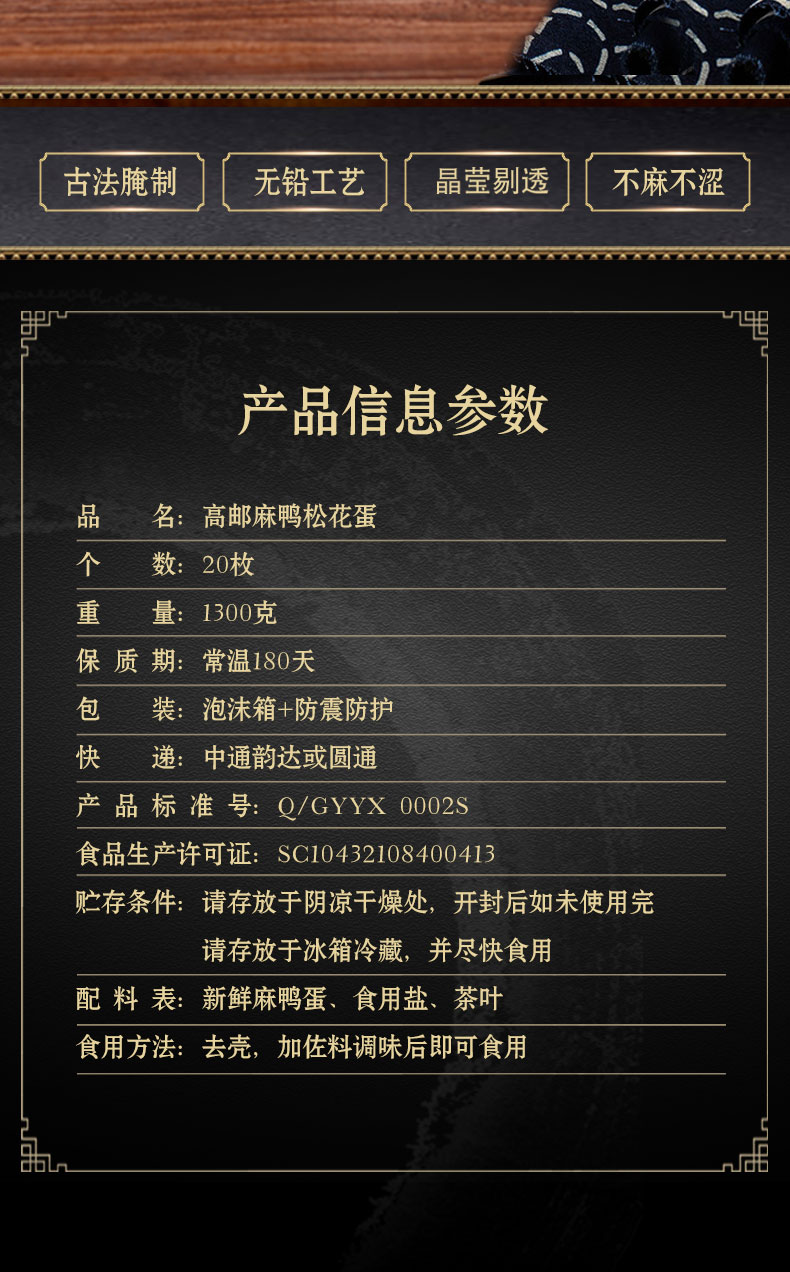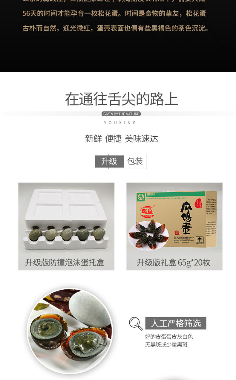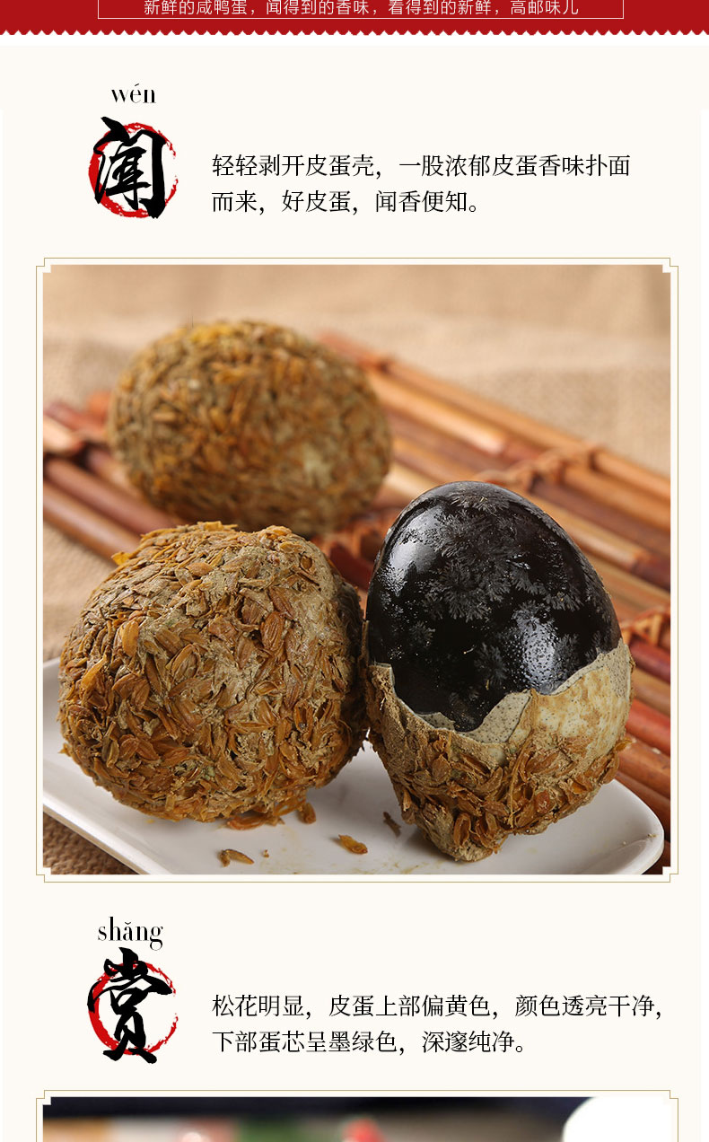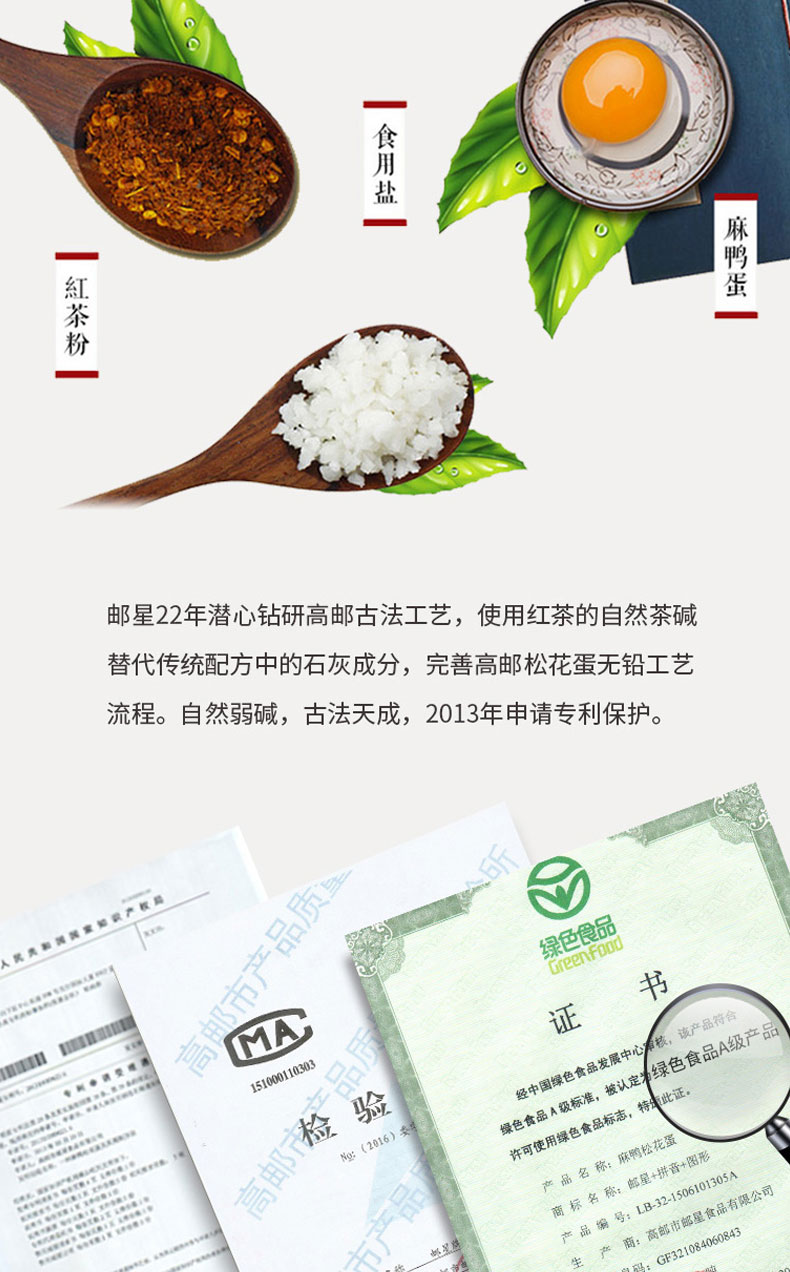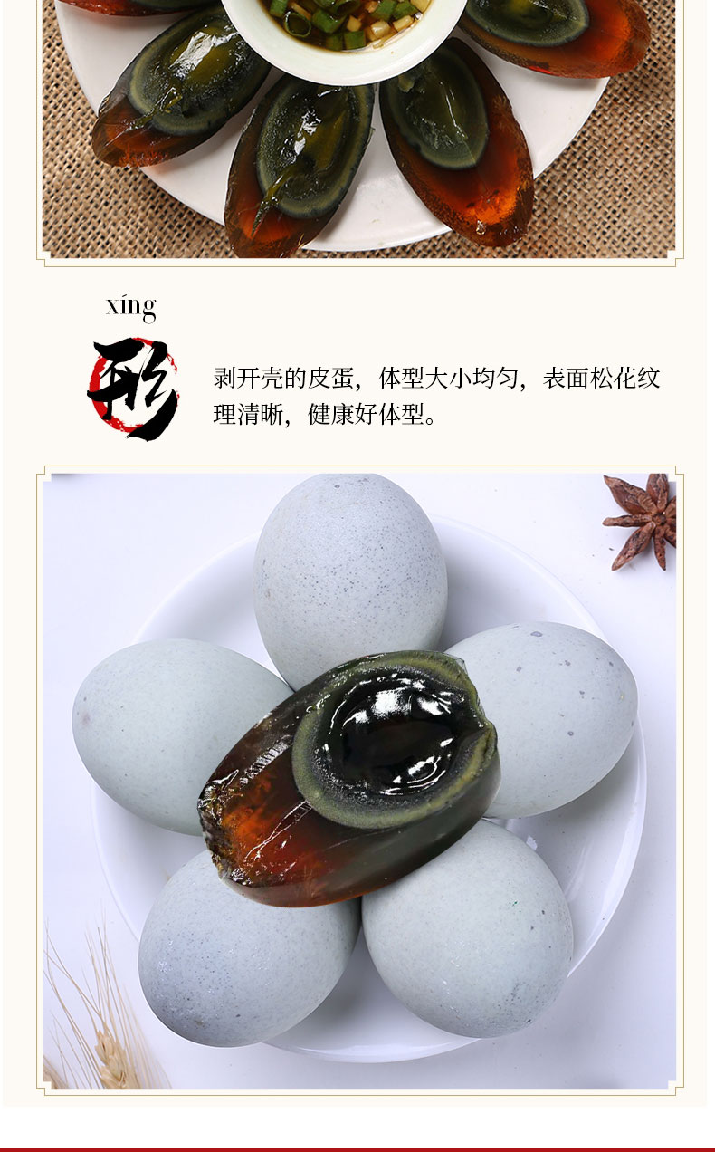 天猫邮星旗舰店45元,可领20元优惠券,实付25元到手,邮星22年潜心钻研,采用红茶的自然茶碱替代传统配方中的石灰成分,无铅工艺流程,自然弱碱,古法天成,鸭蛋松花明显,皮蛋上部偏黄色,颜色透亮干净,下部蛋芯呈墨绿色,深邃纯净,做粥、凉拌都美味,溏心松花蛋,口感鲜嫩爽滑,松软沙口,香到忘不了!