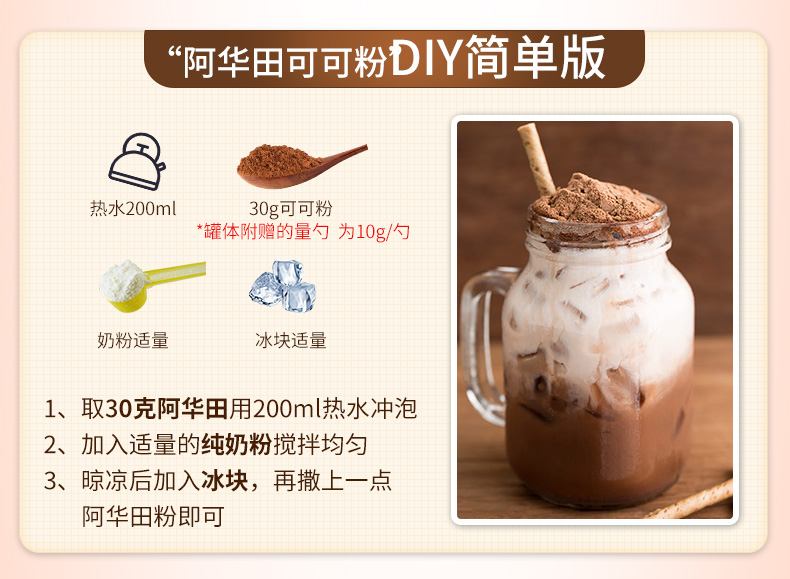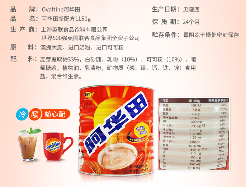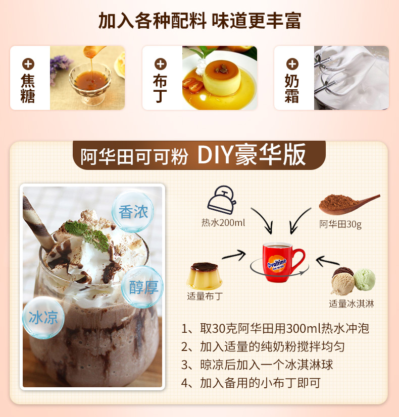 天猫超市59.8元,可领10元优惠券,实付49.8元到手;天猫超市直发,次日可达。阿华田是世界500强联合利华旗下品牌,这款麦芽可可粉是其多年的拳头产品,选用澳洲阳光大麦、进口乳粉和进口可可粉调制,含有丰富的营养元素,浓香可可风味,可热饮可冷饮。