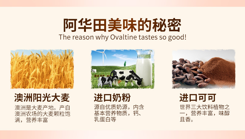 阿华田源自瑞士百年品牌,德文Ovomaltine,1904年由制药专家艾尔伯特·温德博士( Dr.AlbertWander )研制的营养饮品,在20年代的瑞士,阿华田是冰球、滑雪等体育运动的指定饮品。通常运动员比赛完,都会饮杯阿华田,既驱寒又补充体力,直到40年代,阿华田才被正式引进香港。