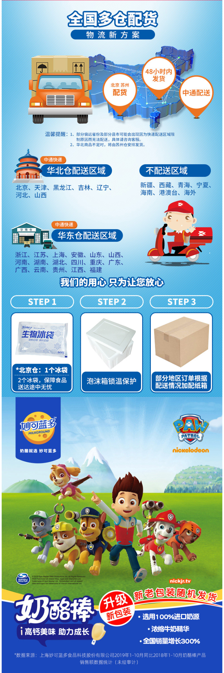 妙可蓝多,上市企业,大品牌,他家的奶酪基本霸占所有商超的黄金位置,小编常买妙可蓝多马苏里拉芝士做披萨,质量是靠谱的。奶酪棒深受小朋友喜欢,单支20g。