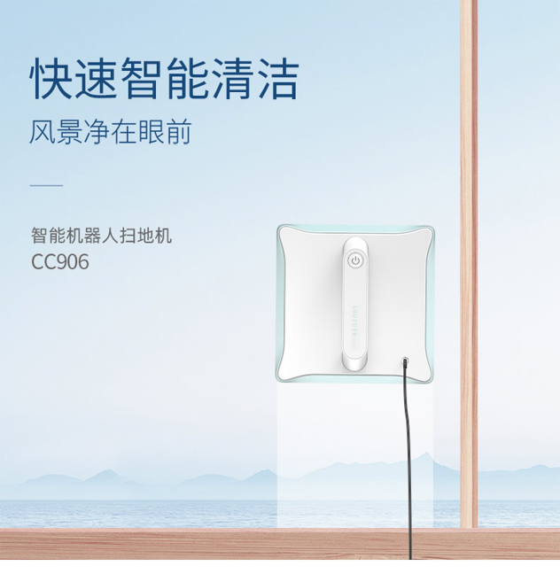 这款罗弗尔 CC906 全自动智能擦窗机器人,可遥控或手机APP超控,还可连接天猫精灵,进行语音交互,完全解放双手,非常方便,智能规划路径,四周分布探边传感器,防碰撞放跌落,窗户有无边框都可使用,有效覆盖率高达99%,一平方米仅需2.5分钟,起点记忆功能,工作完后方便拿取。