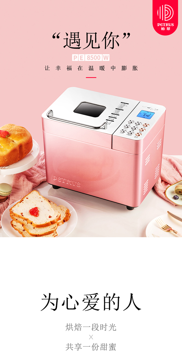 Petrus 柏翠 PE8500W 全自动云食谱智能面包机,采用50W纯铜直流电机,效率高损耗低,更耐用;专利双管烘烤,360度双层几字形立体加热,加热面积+70%,烘烤更均匀,水分不流失。