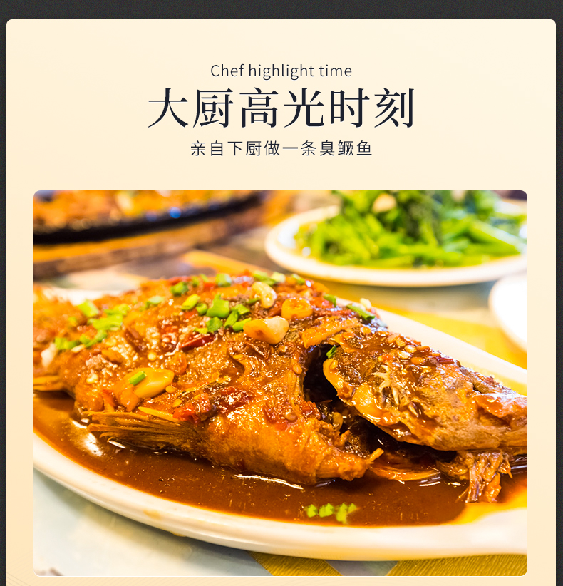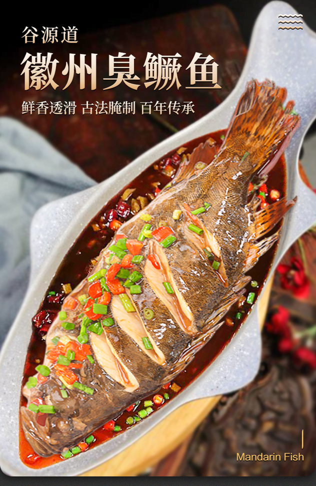 这款正宗徽州特产臭鳜鱼,单只净膛8-9两,一共3条,臭鳜鱼,烹制之前腌制后的鳜鱼闻起来“臭”,烹制后的鳜鱼吃起来香。这一“臭”一香,形成了鲜明的对比,更增加了此菜的魅力,使其成为徽菜的经典之一。