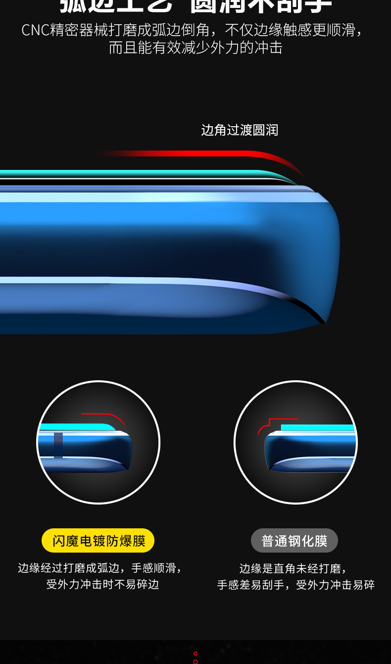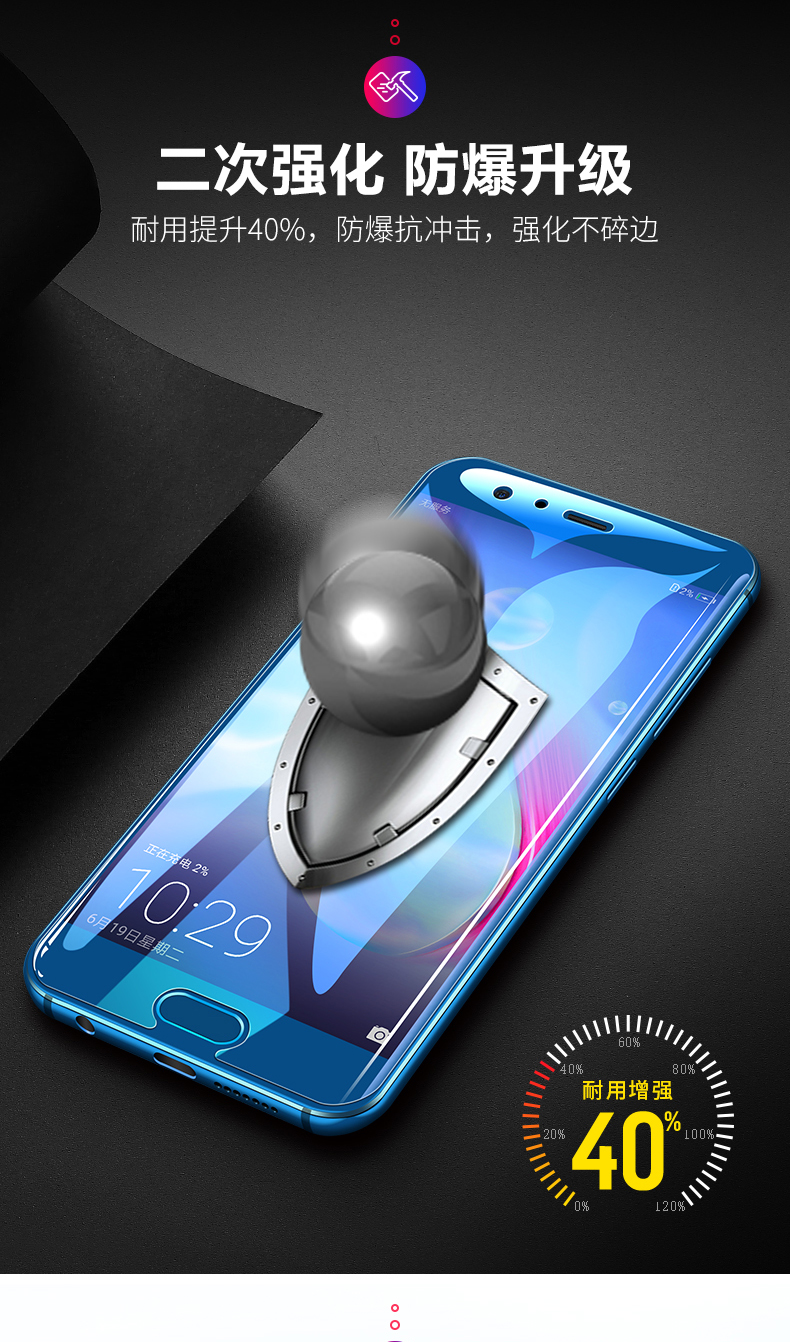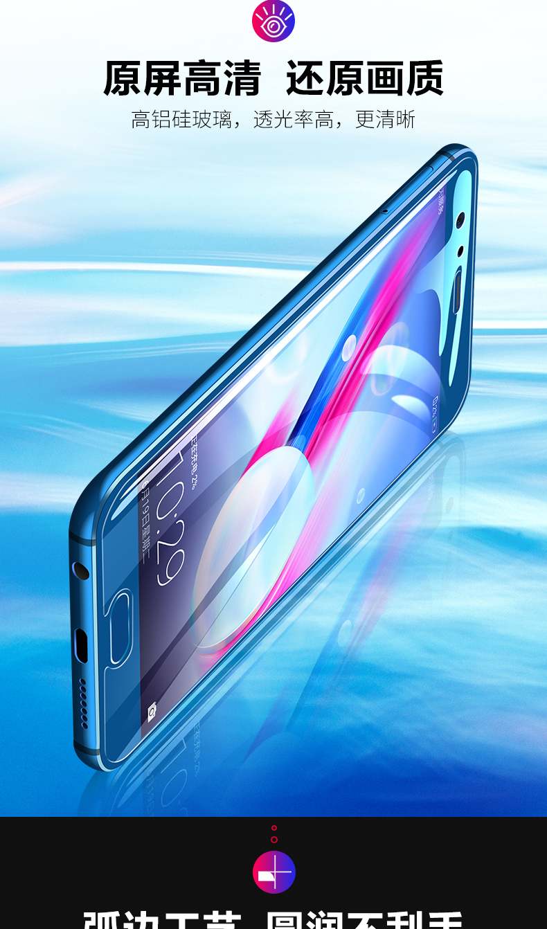 这款钢化膜为非全屏膜,纳米版抗指纹,有多个型号可选。表面有抗指纹涂层,疏水疏油,不易粘指纹,滴水成珠,2.5D倒角,边缘更顺滑,有效减少外力冲击。采用全球第二大玻璃制品公司-旭硝子的玻璃,透光率高,9H硬度,厚0.33mm,触控灵敏的同时,耐磨耐刮,有效减少手机屏幕上的划痕。