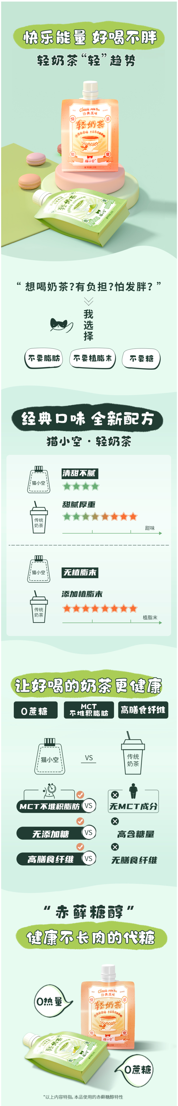 这款猫的天空之城 0蔗糖爆摇奶茶,加入热水,摇晃10~30秒即可饮用,无需额外找杯子。奶茶使用赤藓糖醇代替蔗糖,0热量,好喝不发胖,还富含高膳食纤维,能抗饿。