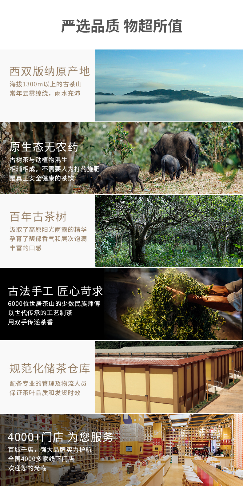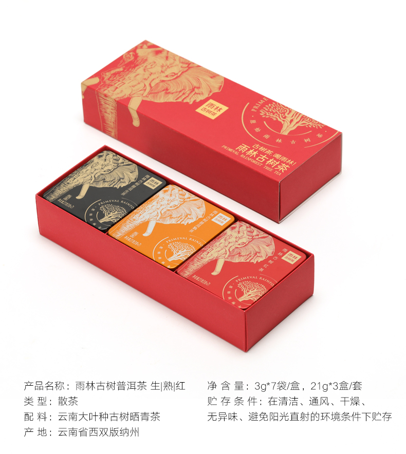 源自西双版纳海拔1300m以上的百年古茶树,汲取了高原阳光雨露的精华孕育了馥郁香气和层次饱满丰富的口感,由少数民族师傅以世代相传的古法制茶工艺制作。“原始雨林”精美时尚小铁盒装,每盒7小袋,每袋3g,高颜值易冲泡,方便易携带,高端大气上档次,自用送人皆可。