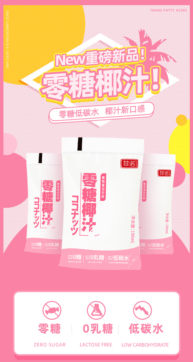 这款菲诺纯 零糖椰汁,鲜椰现榨,加入原生椰子水,椰香浓郁;不添加香精、色素、防腐剂等,短保45天,确保椰汁新鲜;0糖、0乳糖、低碳水,满口椰香,清甜不腻。