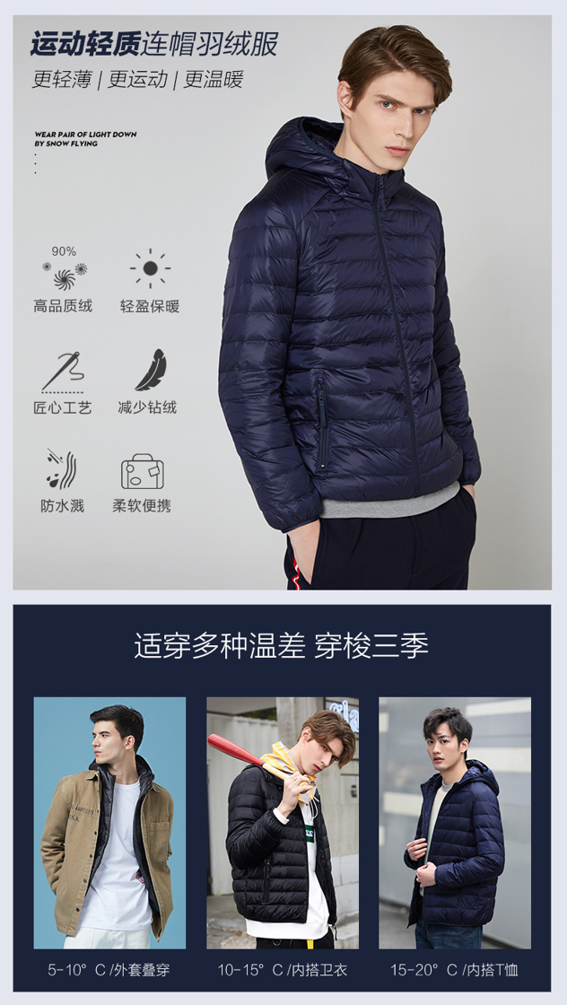 天猫雪中飞官方旗舰店259元,可领100元优惠券,实付159元到手,多款可选,全5分好评,雪中飞官方旗舰店,品质有保障。这款雪中飞羽绒服,修身轻薄款式,适合春秋比较冷和冬季不太冷时穿,选用高品质的大朵绒白鸭绒,不含杂质,含绒量高达90%,充绒量不到100g,轻暖无压迫感。大身是高密尼龙面料,舒适透气,防钻绒、防泼水,耐脏易清洗。附赠收纳袋,出行轻松携带,实用方便。