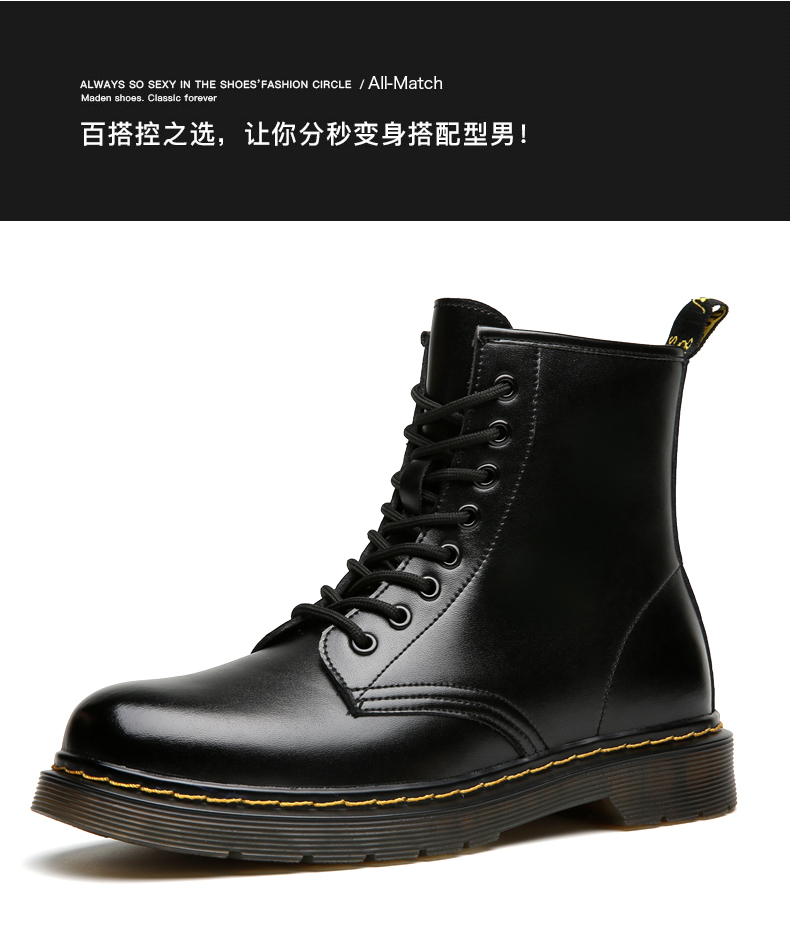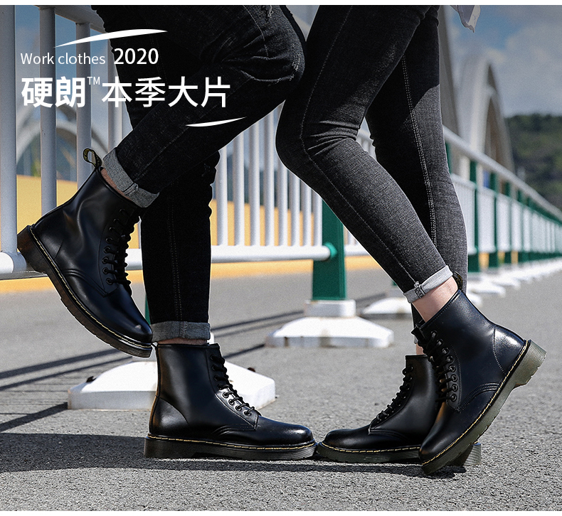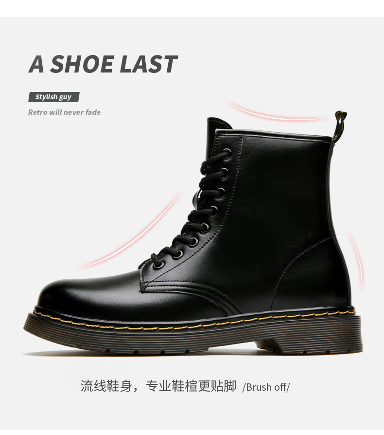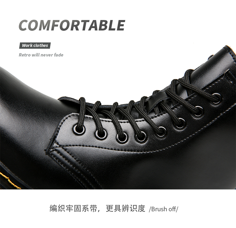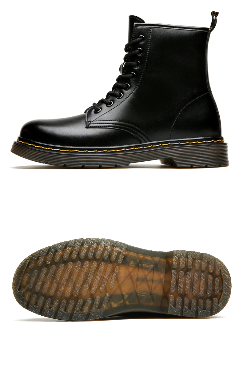与普通马丁靴的橡胶大底不同,直接上升一个档次,采用透明牛筋大底,缓震耐磨,防滑耐穿。经典8孔系带设计,英伦风高帮款式,轻松驾驭休闲商务等多个场合,百搭穿着。