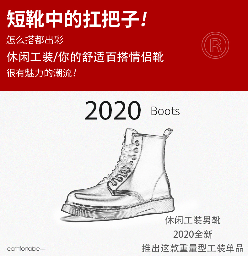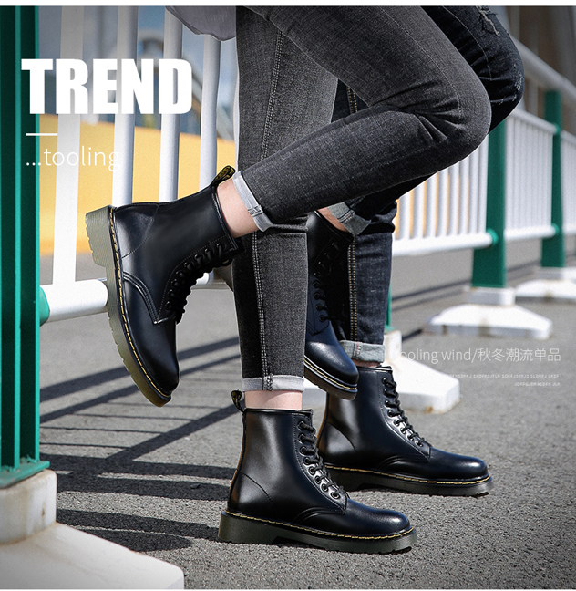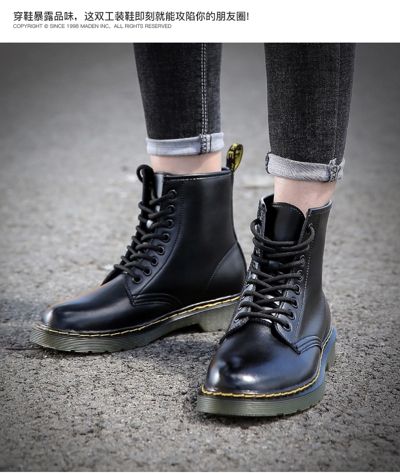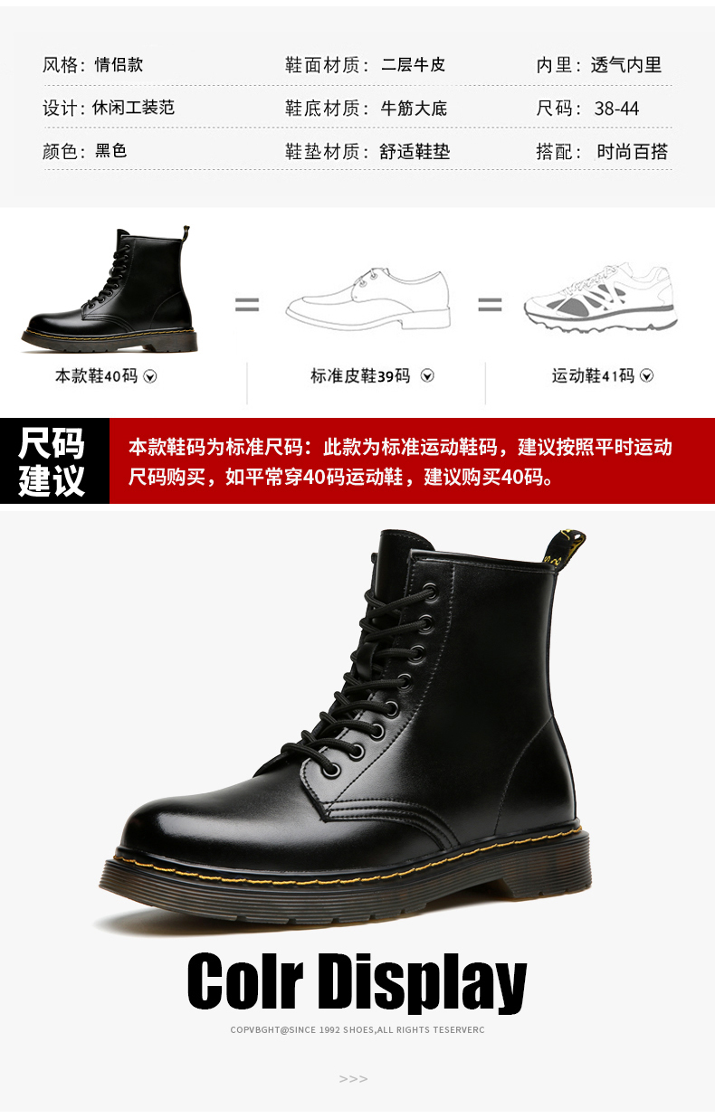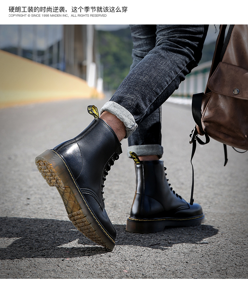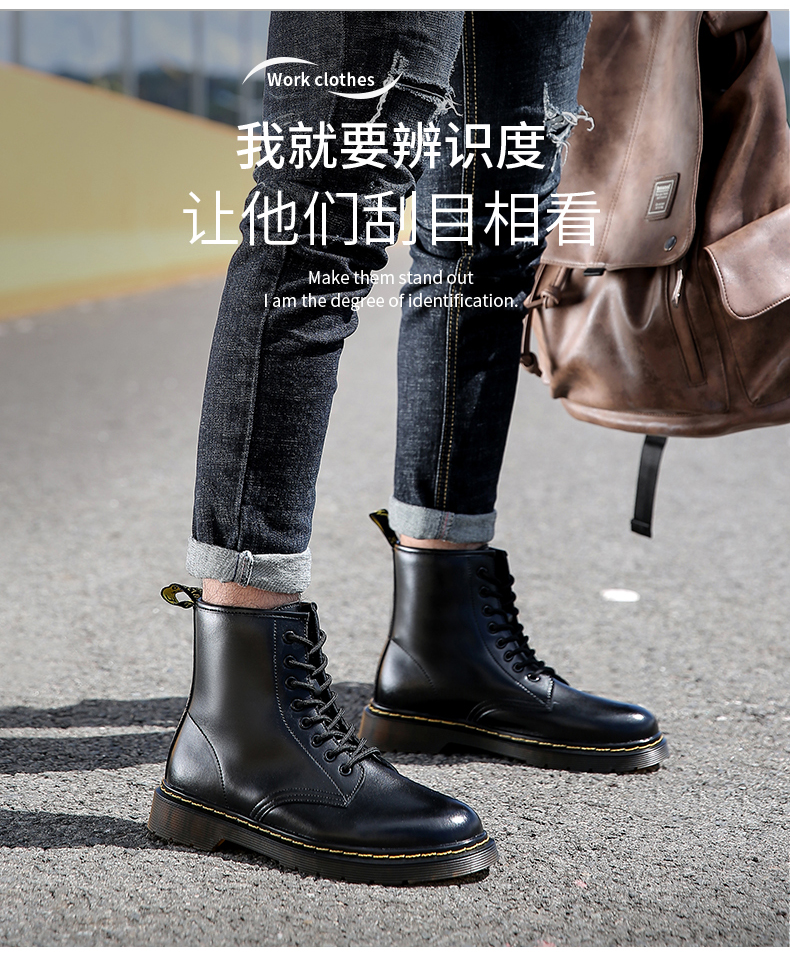 与普通马丁靴的橡胶大底不同,直接上升一个档次,采用透明牛筋大底,缓震耐磨,防滑耐穿。经典8孔系带设计,英伦风高帮款式,轻松驾驭休闲商务等多个场合,百搭穿着。