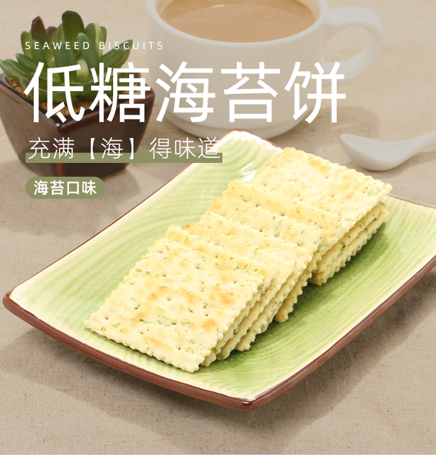 这款低糖海苔饼,精选阳光小麦粉融入鲜美海苔精心烘焙而成,含有膳食纤维,营养丰富,轻薄咸香,清香爽口,酥脆不腻。独立小袋包装,方便存放携带。