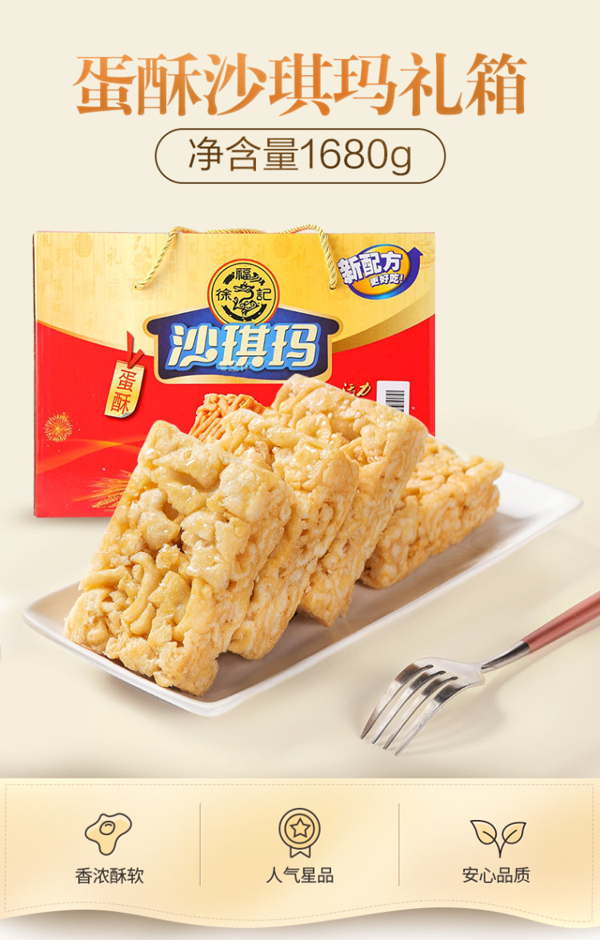 天猫超市79.2元,下单立减25元,可领15元优惠券,实付39.9元到手3斤多,是正价89.9元的4.4折;猫超包邮,徐福记最经典的沙琪玛,精选水份为百分之13.8的粗蛋白质,百分之9.5以下的低筋面粉,保证口感柔软,无添加蔗糖,松软不粘牙,吃起来更健康!领券链接点此