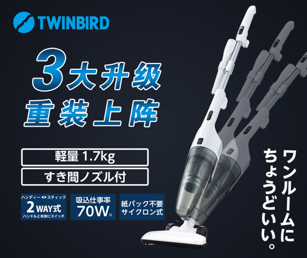 这款双鸟TC-E123Z吸尘器,直立、手持二用可拆式设计,小型轻量,超便携;旋风式高效尘气分离集尘,吸力持久不衰减;超高能效比,吸入功率达70W,环保更节能;可水洗过滤网、集尘杯完全无耗材更经济。