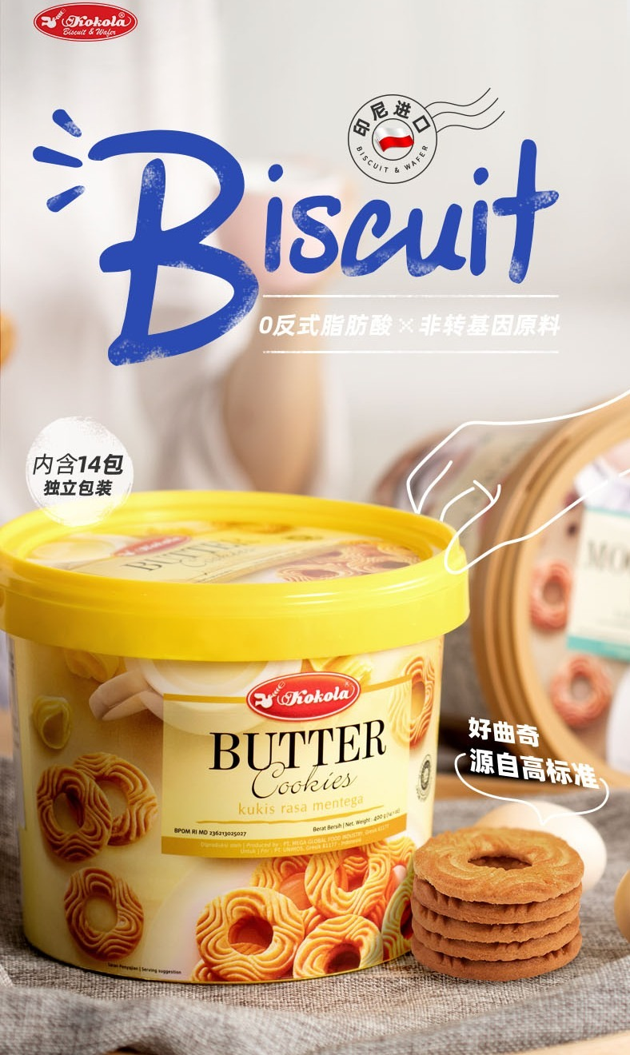这款曲奇饼干,印尼原装进口,有黄油、椰子、香草、摩卡四种口味,精选无转基因天然原料。甄选优质黄油,清甜不腻,口感细腻,香浓四溢,0反式脂肪酸,食用健康。规格:400g桶装,内置独立小包,方便存放携带。