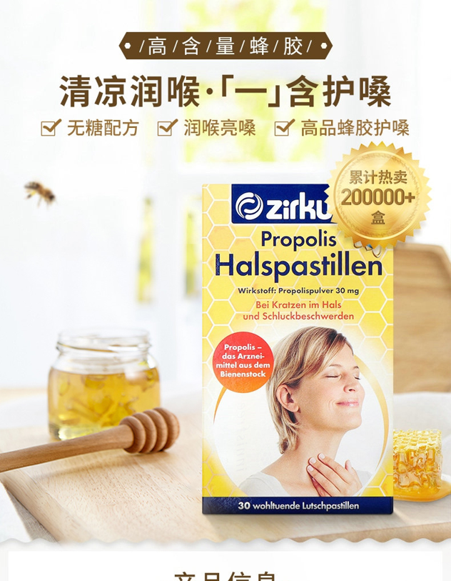 这款 Zirkulin 润喉糖含有丰富的蜂胶成分,可有效增强口腔抵抗细菌病毒的能力,愈合口腔黏膜,缓解咽喉不适的同时,贴在口腔溃疡处还能治愈空腔溃疡。