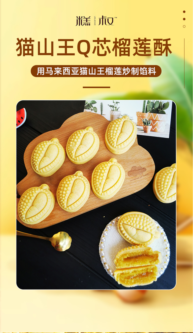 正宗爆浆榴莲饼,精选猫山王榴莲炒制馅料,外皮酥松,内馅软糯,浓香馥郁,口齿“榴”香,高纤维素,低胆固醇,低脂肪,地道的榴莲风味,让你无法抵抗!
