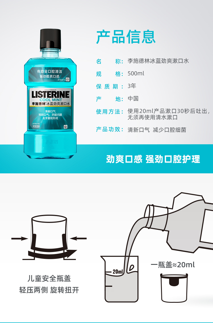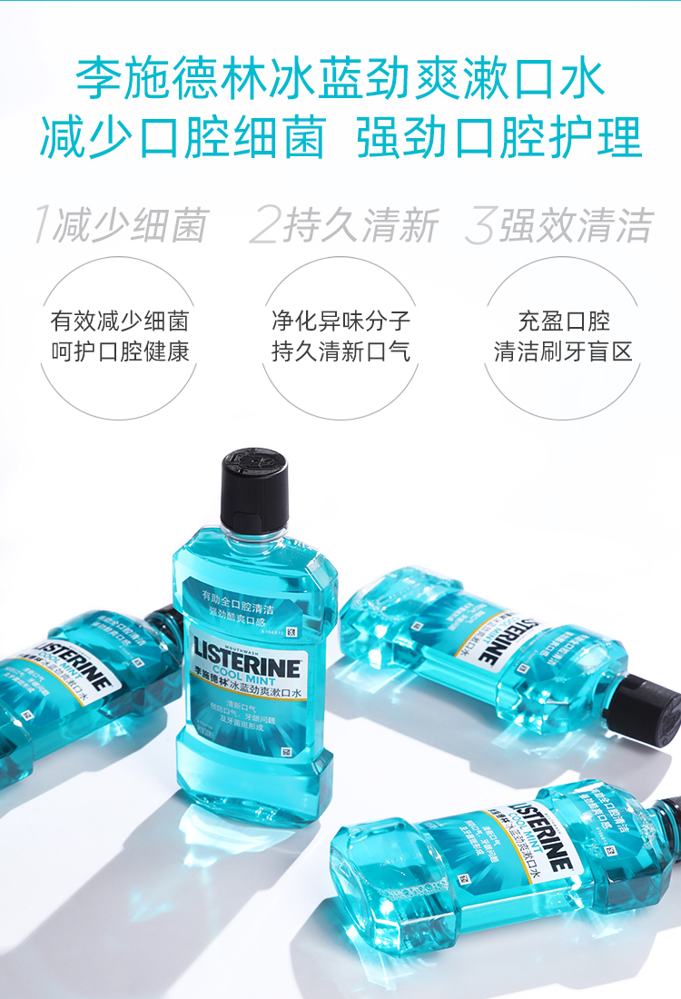 这款李施德林 冰蓝劲爽漱口水,适用于早晚刷牙后,或者需要清洁口腔时使用,每天建议漱口一次,清除口腔细菌,不要用水稀释,使用后,无需再用水漱口。