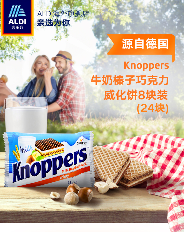 天猫ALDI海外旗舰店79.9元,可领20元优惠券,实付59.9元到手;规格是25g*8块*3包。德国老牌公司August Storck KG于2015年推出Knoppers威化饼干,迅速风靡欧洲及新西兰等地,口感可媲美马卡龙,五层威化,这款是榛子椰子口味,费列罗巧克力+鲜牛奶+椰子+威化+榛仁巧克力酱+威化,营养美味健康 ---低糖、低脂肪、低卡路里,不含防腐剂。