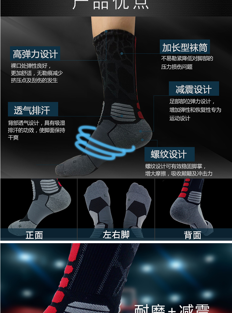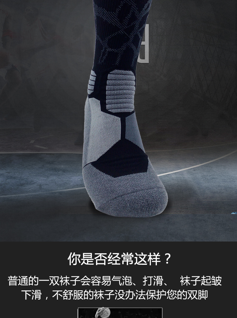 这款篮球袜全面融合强效排汗面料,脚面保持干爽,并线及网布毛线柔软面料,巧妙缓震功能与动态足弓支撑,增加弹性和恢复性,为你的双脚缔造卓越舒适感与强力减震功能,加长型袜筒降低对脚部的压力损伤问题,立体编织袜口高弹无勒痕,减少挤压点及刮伤的发生,并稳定贴合双足,助你制霸赛场。