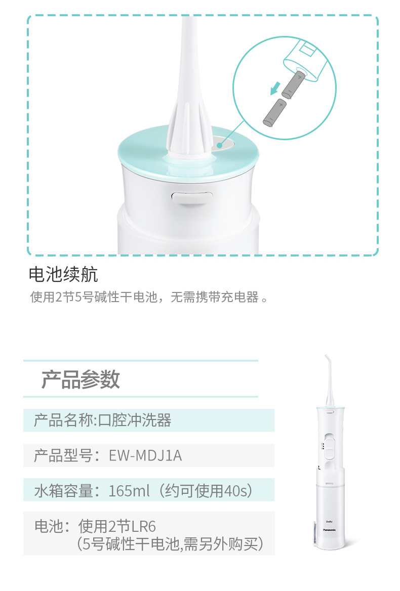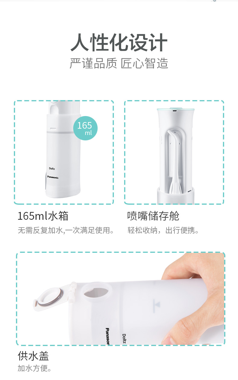 这款松下 EW-MDJ1A 便携冲牙器,通过高频脉冲水线,能轻松祛除牙齿和齿间的食物残渣,达到改善口腔环境、清除口腔炎症,去除牙菌斑,预防牙结石,保护口腔健康的目的。