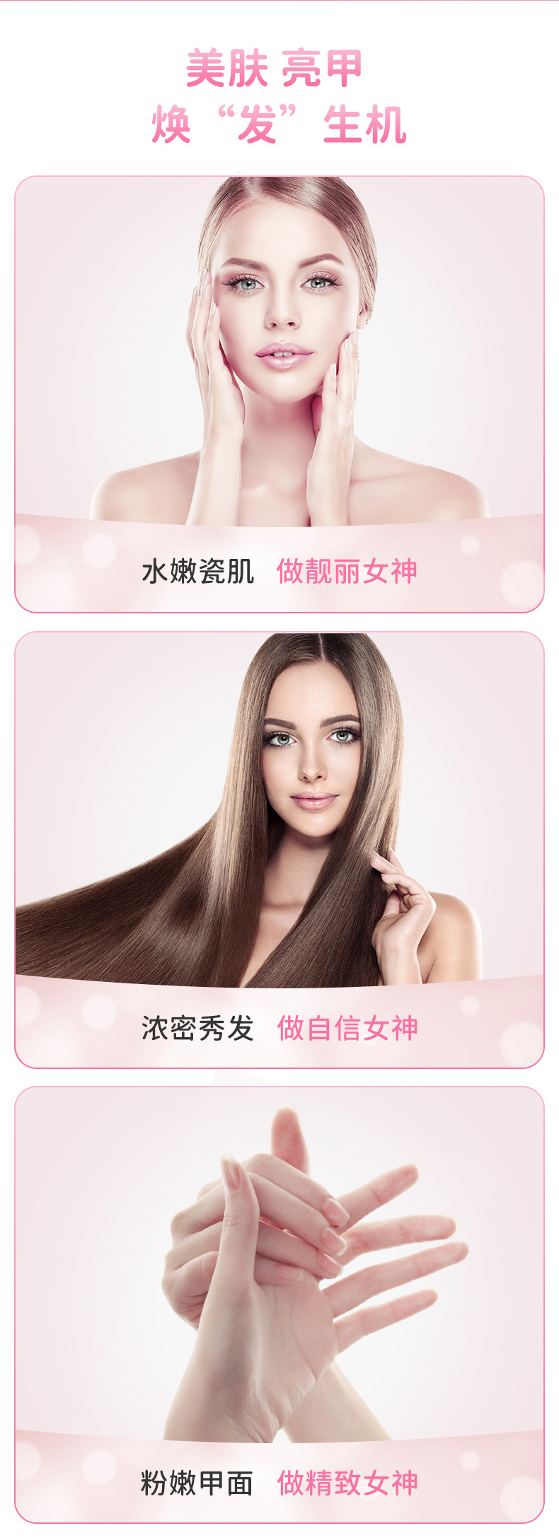 生物素:有助于补充毛囊营养、减少脱发、修复受损开裂指甲。