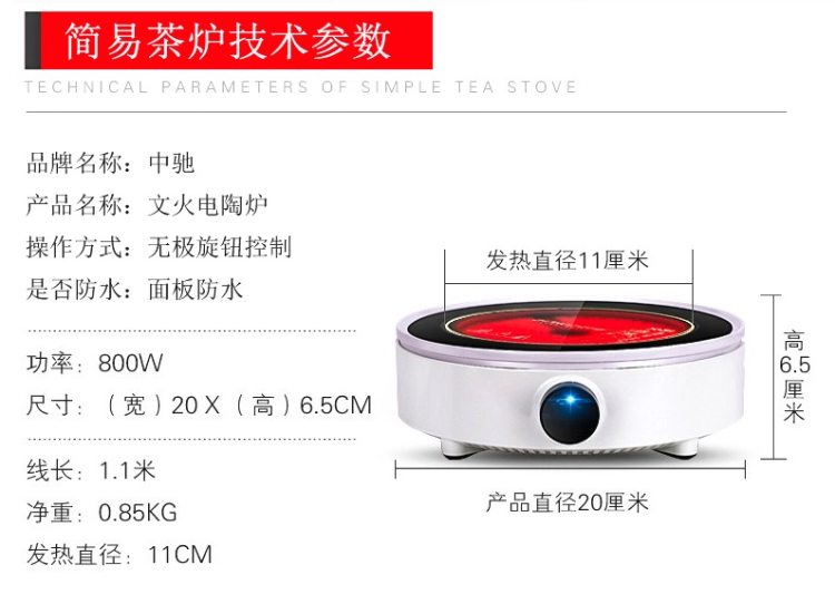 中驰 家用迷你电磁炉,800w功率,2s快速升温,告别电磁辐射无噪音,一炉多用不挑炉具,玻璃、紫砂、铁壶、铜壶等等都能用,无极旋钮调控,微晶面板,耐磨耐刮,防水防爆,还原炭火煮茶,享受高品质生活。