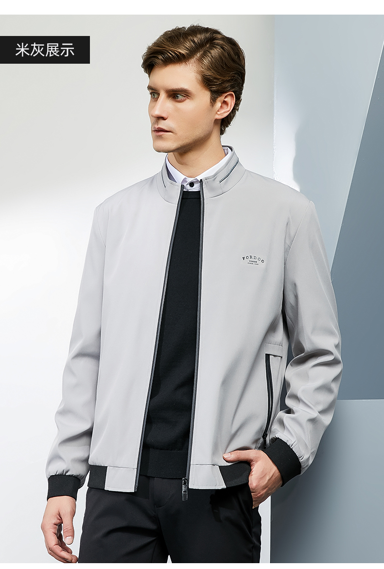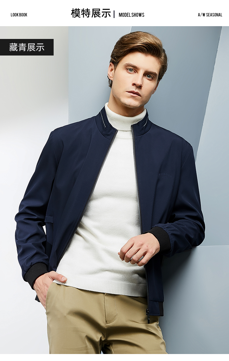 与其他棒球领夹克不同,这款采用立领款式,版型更板正利落,有通常所说的“干部装”风范,沉稳大气,无论日常休闲,还是商务场合,都适合穿。