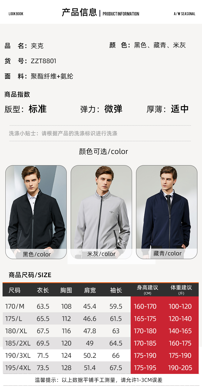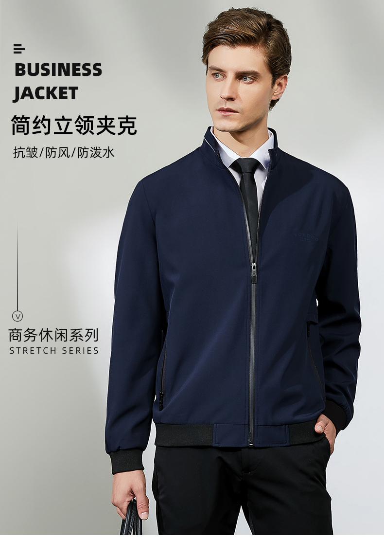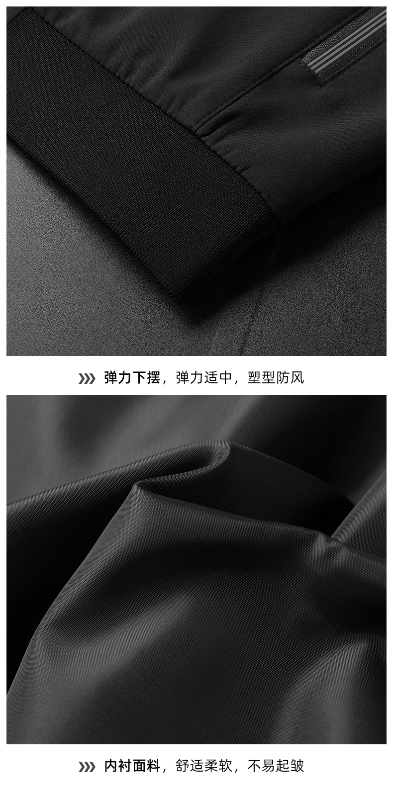 这款外套精选涤纶材质,版型挺括,且不易起球褶皱;表面有光泽,视觉档次也高。立体裁剪工艺,经典小立领+拉链开衫设计,挺拔有型。门襟处使用品牌Logo定制款纽扣和拉链,这些都是高档服饰的配置,细节精致到位。