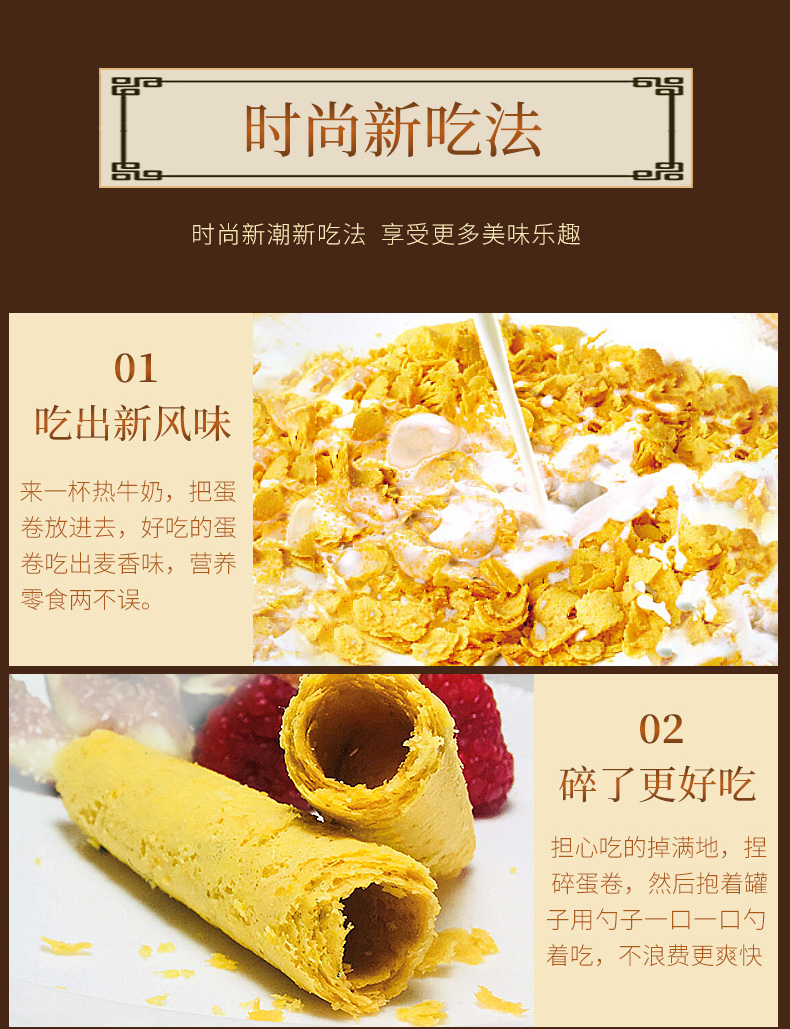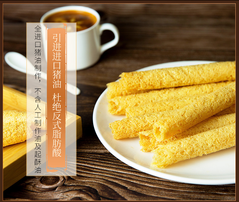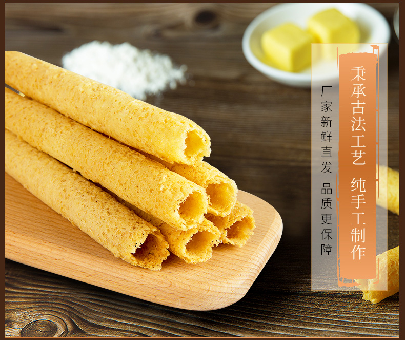 这款葡式蜂巢手工鸡蛋卷,精选优质原料制作,多层卷酥、层次分明,相比传统单层蛋卷口感更加酥脆,蛋香浓郁、不含人工制作油及起酥油,零反式脂肪酸,吃着放心无忧,独立小袋包装,方便存放分享。