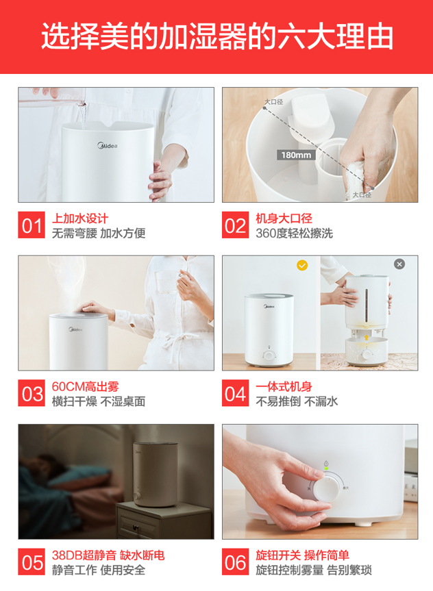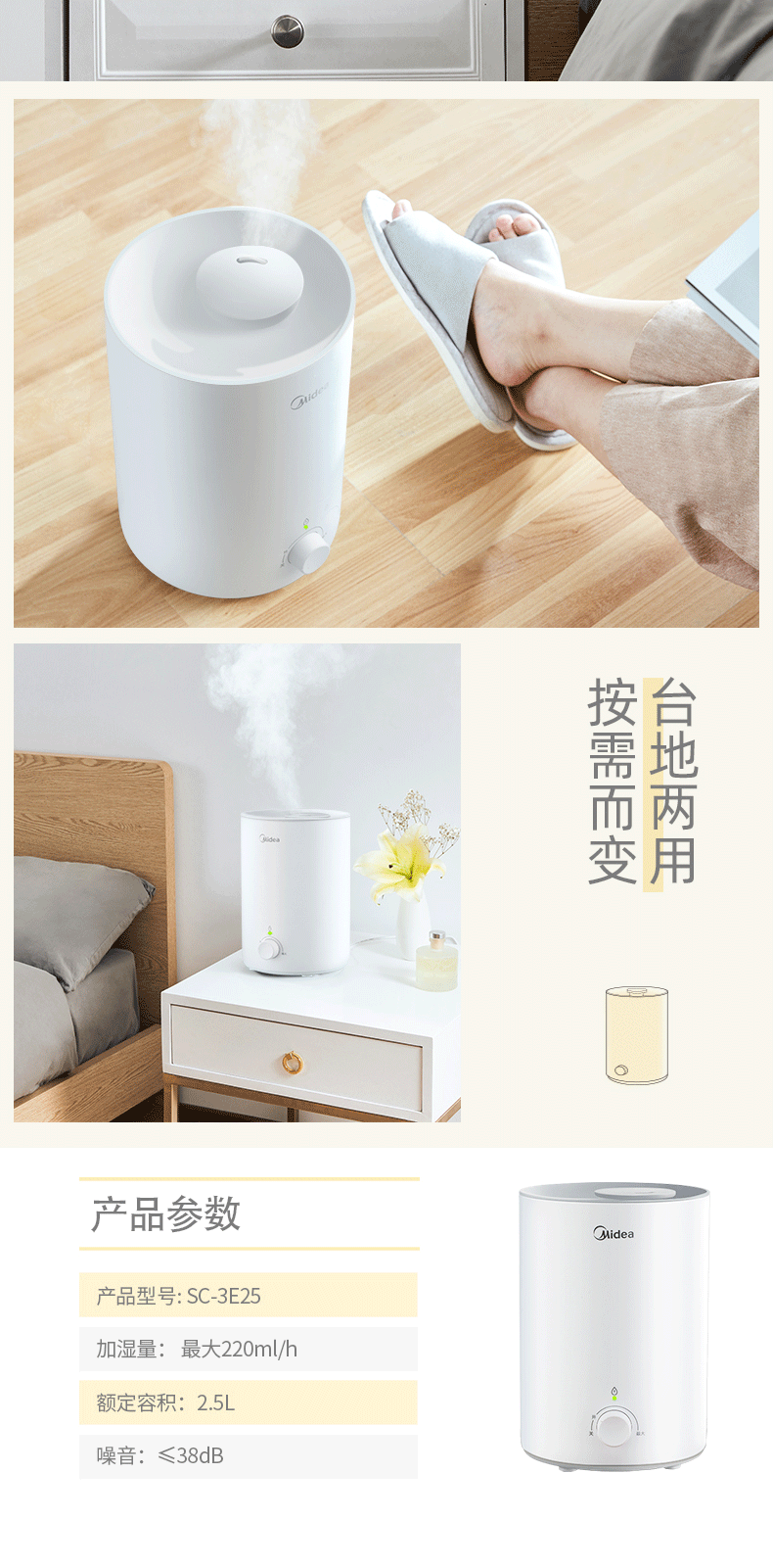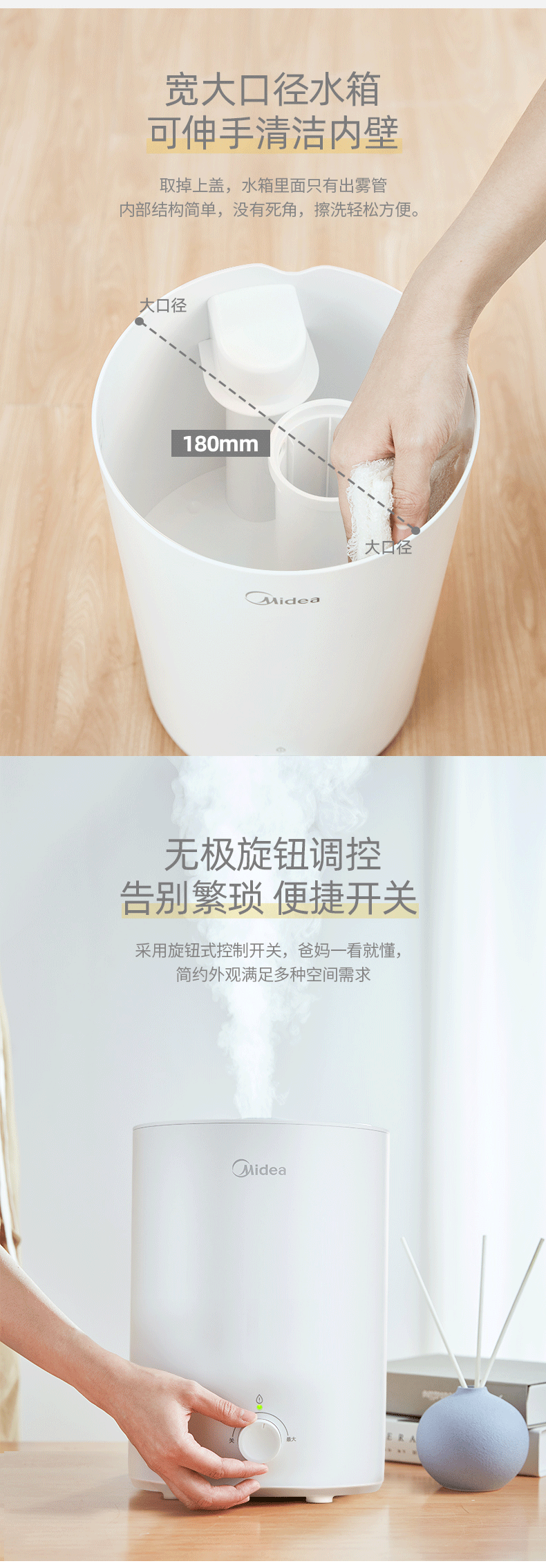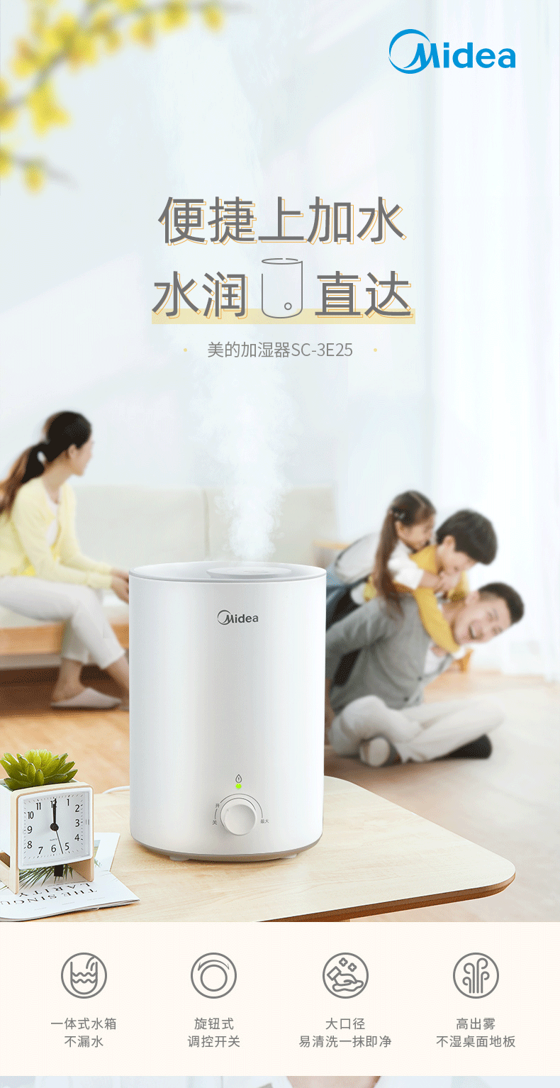 天猫美的生活电器旗舰店99元,可领30元优惠券,实付69元到手,这款美的加湿器,2.5L大容量,上加水口,开盖就能加水,便捷方便,一体式设计,不会出现误操作洒水的问题。