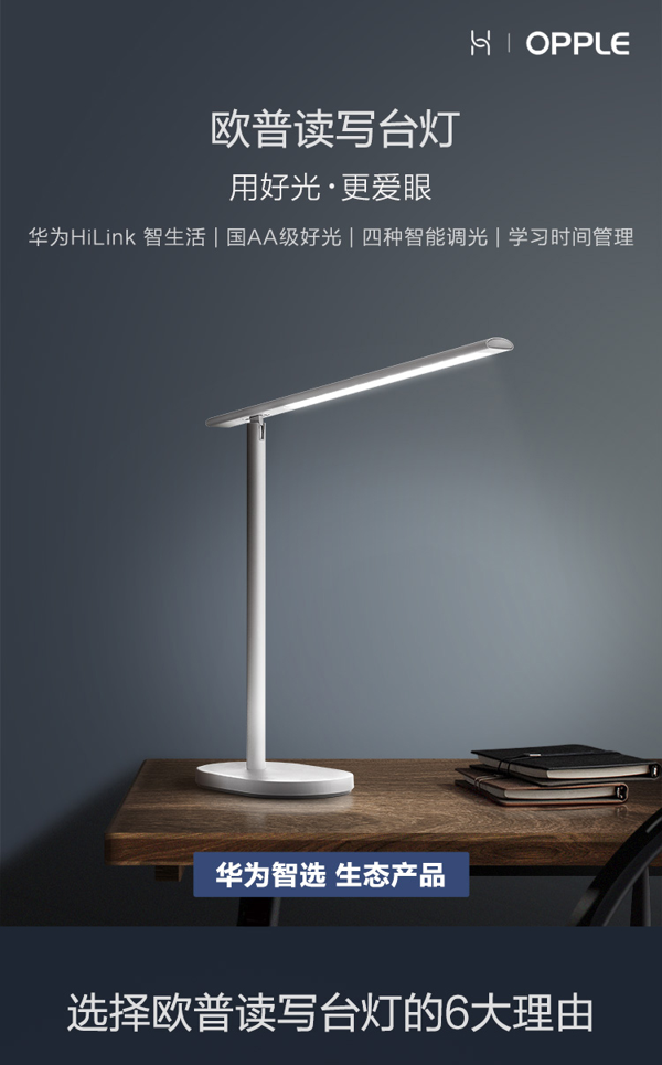 有顶灯和侧灯立体双光源,能避免在无侧灯情况下,视觉切换造成的明暗不同,有效减轻眼疲劳,基板和灯罩均使用航空铝材质,表面为磨砂喷粉工艺,质感很好,连接华为智能家居app后,可wifi控制,有定时和倒计时等智能特色功能,台灯由欧普照明代工和售后,质量方面是靠谱的。
