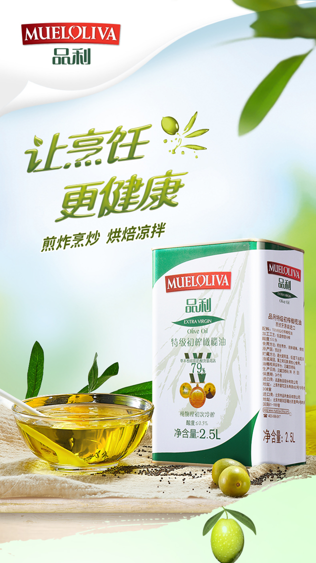 MUELOLIVA品利,成立于1842年西班牙,世界知名的食用油生产企业,是食用橄榄油十大品牌,拥有127公顷种植园,2500平米现代化工厂,其生产的橄榄油在世界上多次获得金奖、银奖,同时也是中国体育训练局、国家队运动员备战保障产品。